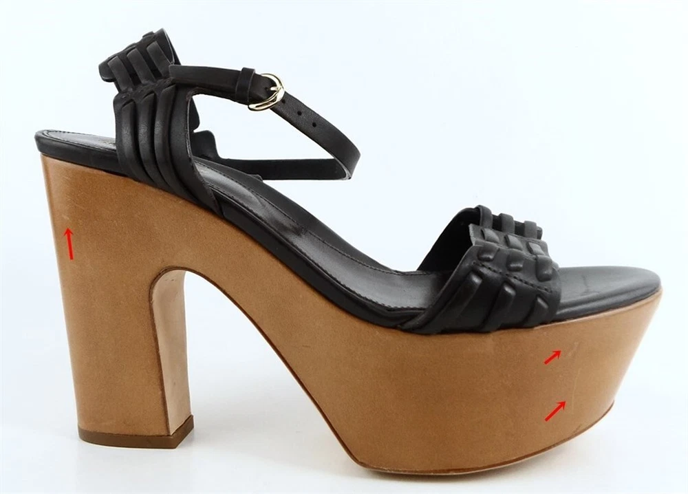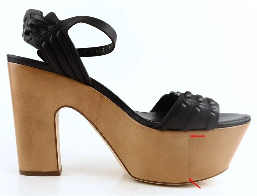 New/ store display ( platform and heel scuffed ) in original box w/ dust bag Leather/ suede upper; Leather sole; Leather lining Covered wedge measures 5 1/8"; Platform 1 3/4" * Lightly padded footbed Peep toe design Made in ITALY *Measurements are hand taken for every item we sell. Every item is carefully inspected to ensure that you receive a quality product. Designer Shoe Box guarantees this product is 100% Authentic