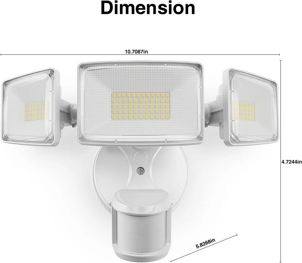 Turn night into day: Illuminate your home with our newest outdoor floodlight featuring 7500 Lumens and 6500 Kelvin daylight LED lighting Multifunctional LED lighting: Two working modes to choose from - motion-activated and dusk to dawn (D2D) mode; an extra test mode for you to confirm if the light works correctly when you receive it and the light can turn on for 5 seconds when motion is detected no matter day or night About motion-activated mode: Detection angle 180°, timer 10 seconds to 10 minutes, customizable motion zone 20~72 feet, and dimmable (Note: the light will stay on all night if you adjust the brightness to 10%~30%) About D2D mode: The outside lights for house automatically turn on at dusk and turn off at dawn Easy to install: Easily hardwired to the outside of your home for around-the-clock power and peace of mind Product Description Why doesn't the floodlight turn off at night? If the dimmable function is turned on in motion-activated mode, the light will stay on (10%~30% brightness) all night. How to make the floodlight turn off at night? Please turn off the dimmable function (turn the knob in the middle of the sensor to the "-" position). Why doesn't the floodlight turn off during the day? If the dimmable function is turned on in test mode, the light will stay on (10%~30% brightness) during the day. How to make the floodlight turn off during the day? Please turn off the test mode.