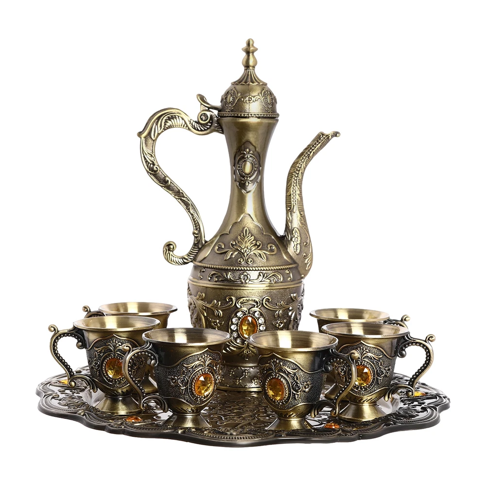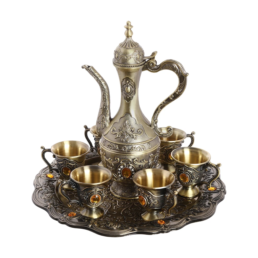 7.5oz Tea Set Teapot & Six Teacups Set with Tray for Serving Coffee, Wine Tea 7.44oz Teapot & Six Teacups Vintage Tea Set for Serving Tea , Coffee, Wine, Application This Product Is Suitable for Serving Tea, Coffee, Wine, Cappuccino, Milk Tea, Whiskey, Brandy, and Mixed Cocktails. Specification Color: Bronze+ Yellow Material: Zinc Alloy, Plastic Process: Electroplating Style: Vintage Assembly Required: No Mounting Type: Tabletop Teapot Capacity: 220ml/ 7.44oz Each Teacup Capacity: 15ml/ 0.5oz Teapot Size(W*H): 13*22cm/5.12*8.66in Each Teacup Size(W*H): 6.5*5cm/2.56*1.97in Tea Tray Diameter: 24.5cm/9.65in Package Size: 27*26*9cm/10.63*10.24*3.54in Gross Weight: 2.2kg/4.85lbs Net Weight: 2kg/4.41lbs Package Included 1* Teapot 6* Teacups 1* Tea Tray Description If You Are a Tea Enthusiast, Then Our Tea Set Can Be an Ideal Choice for You. Our Tea Set Is Made of High-quality Materials That Are Solid and Durable. the Vintage Beautiful Carvings Show Generosity and Luxury. the Complete Set Fully Meets Your Tea-tasting Needs. It Is Not Only Practical but Also a Beautiful Home Decoration or Collection. Key Features Made to Last: This Product Is Made of High-quality Zinc Alloy Material, Treated with an Electroplating Process, Solid and Durable, Drop and Wear-resistant , and Not Easy to Fade and Deform. Complete Set: This Set Includes 6 Teacups, 1 Teapot, and 1 Tea Tray, Which Can Fully Satisfy Your Tea-tasting Needs, You Don't Need to Buy Them Separately. Exquisite Appearance: with Delicate Relief Patterns and Yellow Diamond-like Embellishments, This Product Is Vintage and Elegant, Showing the Palace-like Luxury and Making It an Ideal Collection. Special Decoration: It Can Be Used to Decorate Your Tea Set, Coffee Table, or Dining Table to Enhance Your Taste. When You Are Having a Drink, Tea, or Coffee with Your Friends and Guests, This Teapot Set Can Attract the Attention of Your Guests and Become the Center of Discussion. Large Capacity: the 7.44oz Teapot Capacity and Six Teacups(Each 0.5oz) Will Satisfy You and Your Family's Tea-sipping Needs at Once. Assembly-free : This Product Does Not Require Any Assembly, so You Can Use It After Cleaning It, Saving You Time and Labor. Effortless Cleaning: It Has a Simple Structure, so You Only Need to Wipe the Dust or Residue with a Towel or Rinse It with Water. Ideal Gift: with Good Performance and an Exquisite Appearance, It Can Be Used As an Ideal Gift for Newlyweds, Moving into a New House, Father's Day, Birthday, Thanksgiving, Etc. Good Customer Service: We Aim to Provide Quality Products and Services. If You Have Problems, Please Feel Free to Contact Us. We Will Reply and Solve the Problem for You As Soon As Possible. Details Practical Handles: the Teapot and Teacups Come with a Handle Design That Makes It Easy for You to Hold and Use. Tea Tray: This Design Is Convenient for You to Organize and Arrange Teapots and Teacups, Which Are Not Only Beautiful but Also Do Not Take up Much Space. Semi-revealing Teapot Lid: This Design Facilitates You to Add Tea and Also Protects the Cleanliness of the Tea. Notes Please Confirm That the Size Meets Your Needs Before Ordering. Please Note That This Tea Set Is Not Dishwasher Safe. Please Allow the Slight Color Difference Caused by the Shooting Light and 1-3cm Error Due to Manual Measurement, and Make Sure You Do Not Mind Before Ordering. tu1 Payment Delivery details Terms of sales About us Contact us Payment We accept ebay payment 。 Fees such as import duties, taxes are not included in the item price or shipping costs. These charges are the buyer's responsibility. Delivery details Shipping: 2-9 working days to: USA Terms of sales We maintain high standards of excellence and strive for hundred percent customer satisfaction. Feedback is very important to us. We hope that you contact us immediately before you give neutral or negative feedback, so that we can address your concerns. It is impossible to address issues if we do not know about them! About us Your satis faction is our ultimate goal. We work hard to earn your trust and future business. Our certified technicians have tested each item before shipping. The unit comes with 1 year limited warranty on all manufacturing defects. a) If you receive a defective item, you may return it or ask for a discount. Please contact us within 14 days after you receive the package. b) What you returned must be intact and in its original packaging as re? u. Customer is responsible for shipping costs of the returned item. c) We will cover the cost of shipping back t with the shipping rate indicated in the registration page. We will send you a new unit or refund the full payment you paid. Thank you. Contact us Business Hour Business Hour: Monday To Friday: 8:30 AM to 5:00 PM (Beijing China time) Due to time zones, our reply to your questions may not be immediately. But within above working time, we will reply your email within 24 hours. If it's non-workdays, please kindly be patient and wait till Monday. Please contact us with ebay message. Please feel free to contact us if you have any questions. Monday To Friday: 8:30 AM to 5:00 PM (Beijing China time) Due to time zones, our reply to your questions may not be immediately. But within above working time, we will reply your email within 24 hours. If it's non-workdays, please kindly be patient and wait till Monday. Please contact us with ebay message. Please feel free to contact us if you have any questions. Brand Unbranded Type Tea Set Color Bronze+Yellow Material Zinc Alloy, Plastic Style Vintage Number of Cups 6 Capacity 7.44 oz Features Tray EAN Does not apply UPC Does not apply ISBN Does not apply On Dec 16, 2024 at 21:28:08 PST, seller added the following information: