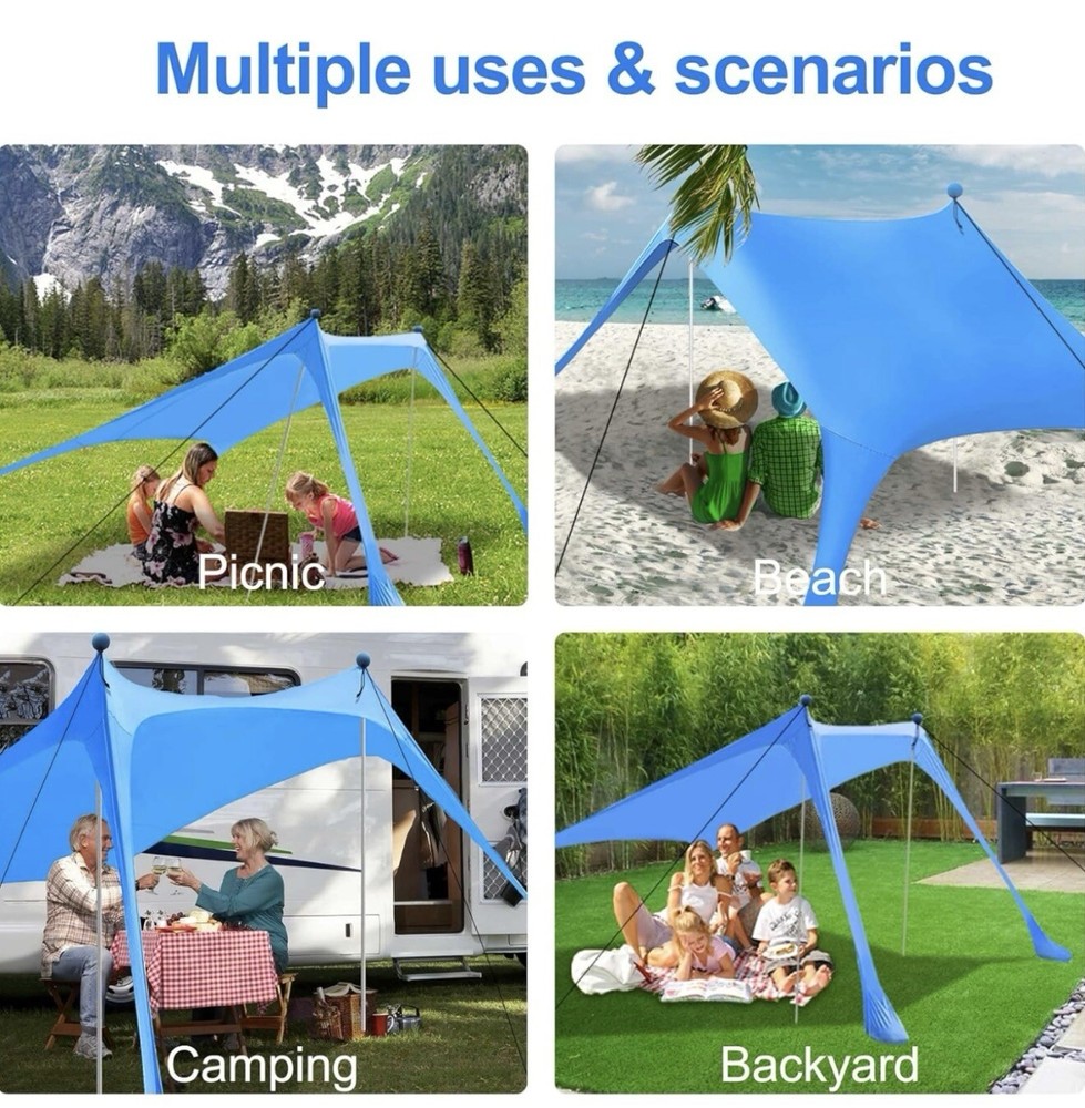 7.5x7.5 FT Beach Canopy Pop-Up Tent with UPF 50+ Sun Shelter