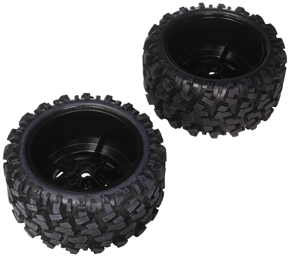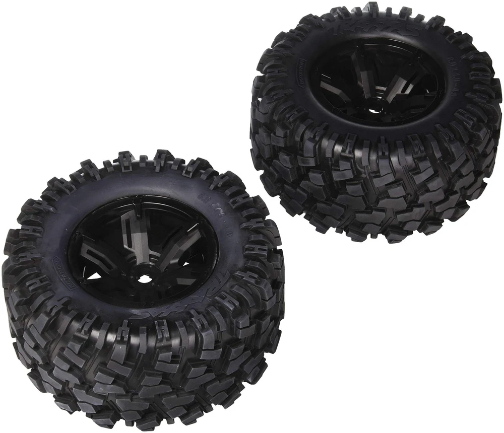 7772X pre-glued black X-Maxx wheels with Maxx at tires (8s-rated), sold as a pair use stock and hop-up replacement parts to get the most out of your RTR vehicles. This product is made from high quality materials and designed for long-lasting performance. This is replacement hardware for use on vehicles; consult your user's manual for exact parts listings. 7772X pre-glued black X-Maxx wheels with Maxx at tires Includes foam inserts (8s-rated) Sold as a pair