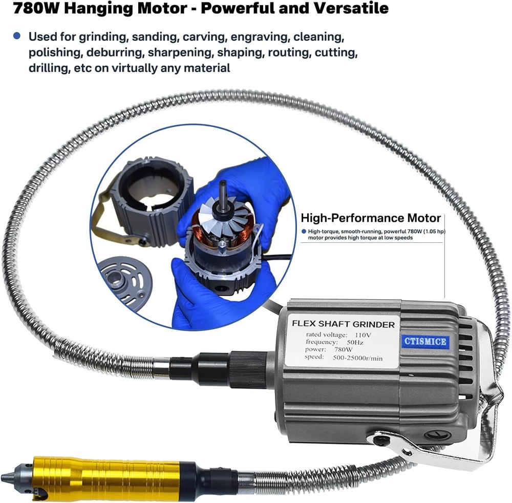 780W All-Copper Motor: The powerful 780W motor provides the electric flexible shaft grinder/carver with a wide speed range of 500-25000 rpm, making it the ideal rotary tool for those detailed projects that require precision and power 3 in1 39 in Flexible Shaft: The 39-inch flexible shaft is composed of a stainless steel shell (protective sheath), an inner flex shaft cable (inner core) and a high-precision three-jaw chuck, which is flexible, safe and stable. (Note: with1 replacement flex shaft inner cable) 780W Flex Shaft Rotary Tool, 500-25000RPM Flexible Shaft Grinder Kits with Variable Speed Foot Pedal and 110pcs Accessories for Grinding Polishing Sanding Deburring Cutting Buffing Finishing 780W All-Copper Motor: The powerful 780W motor provides the electric flexible shaft grinder/carver with a wide speed range of 500-25000 rpm, making it the ideal rotary tool for those detailed projects that require precision and power 3 in1 39 in Flexible Shaft: The 39-inch flexible shaft is composed of a stainless steel shell (protective sheath), an inner flex shaft cable (inner core) and a high-precision three-jaw chuck, which is flexible, safe and stable. (Note: with1 replacement flex shaft inner cable) Upgraded Foot Switch: The variable speed foot controller is made of upgraded ABS material with high strength and toughness that is safer than ordinary materials, and can achieve infinite speed changes, feeling like you are in control of everything. The power cord is extended to 70 in, and the cord for connecting to the motor is extended to 50 in 105pcs Multipurpose Accessories: This flexible shaft grinder comes with many attachments for grinding, cutting, cleaning, polishing, sanding, deburring, grout removal, etc. Cutting wheels, sanding discs, sanding bands, carbon steel brushes, wire brushes, polishing wheels, polishing cones, grinding stone sets, etc. Can meet your different needs Wide Range of Applications: Used for finishing, grinding and adding texture to different materials such as metal, wood, stone, jewelry and more. It's ideal for professionals, craft enthusiasts and DIY enthusiasts at the workbench, workshop and studio Note: Please check the number of accessories according to the product list in the packing box. CTISMICE Flex Shaft Grinder CTISMICE Flex Shaft Attachment CTISMICE Ball Vise CTISMICE Jewelry Tool CTISMICE Jewelry Rolling Mill CTISMICE 4-Claw Pick Up Tool Item Specifics Brand CTISMICE About us Dear buyer, Thank you for visiting my store! Our warehouses are located in many regions around the United States. According to the customer's delivery address. Use USPS/UPS/DHL logistics transportation service. Prioritize the best quality logistics solutions to transport packages. Ensure package delivery time, At the same time. Have any after-sales problems, Feel free to contact us. At your service Payment PayPal is our preferred method of payments it's the quickest, easiest and most secure way to pay for your goods or services online. PayPal offers buyer and seller protection should there be a problem. If you do not have a PayPal account, to get started and buy your first item with us is very easy. Simply click on the 'Buy It Now' button and follow the eBay checkout steps. Select PayPal as the payment method you then will be given the chance to enter your card details in to PayPal's secure checkout in order to pay for your order. Shipping 1. Your purchase is shipped directly to you as soon as we have received your cleared payment. 2. Normally all of parcels would be shipped within 3days(From Monday to Saturday). 3. We will send information on eBay or email if the parcel was delayed due to our holiday. 4. We provide three kinds of shipping for choice. Shipping way depend on delivery address. Returns If an unit is received defective, of course we take it back or replace it. If the unit is received as expected, we must charge for our expenses if you want to send it back. We have to charge for the work of handling, retesting and restocking. DESCRIPTION PAYMENT SHIPPING RETURN POLICY CONTACT US Shop Category Store Home Other Hot Item 6 cu. ft. Steel Tub Wheelbarrow with Wooden Handles and Pneumatic Tire USD 113.90 15 Gal. Portable Resin Gray Lawn Cart USD 48.98 5.5 cu. ft. Heaped Poly Smart Plastic Garden Cart USD 70.98 Flextreme 5/8 in. Dia x 50 ft. Black Performance Rubber Garden Hose USD 46.70 Strongway Industrial Appliance Truck - 1 200-Lb. Capacity USD 204.53 Delivery New List Item Twin Size Wood Daybed/Sofa Bed, Gray USD 217.58 Full Size Wood Daybed/Sofa Bed, Gray USD 244.42 Twin Size Wood Daybed/Sofa Bed, White USD 217.58 Full Size Wood Daybed/Sofa Bed, White USD 244.42 Twin Size Wood Daybed/Sofa Bed, Espresso USD 217.58 Help & Info Payment Policy Shipping Policy Return Policy FAQ About Us 780W Flex Shaft Rotary Tool, 500-25000RPM Flexible Shaft Grinder Kits with Variable Speed Foot Pedal and 110pcs Accessories for Grinding Polishing Sanding Deburring Cutting Buffing Finishing 780W All-Copper Motor: The powerful 780W motor provides the electric flexible shaft grinder/carver with a wide speed range of 500-25000 rpm, making it the ideal rotary tool for those detailed projects that require precision and power 3 in1 39 in Flexible Shaft: The 39-inch flexible shaft is composed of a stainless steel shell (protective sheath), an inner flex shaft cable (inner core) and a high-precision three-jaw chuck, which is flexible, safe and stable. (Note: with1 replacement flex shaft inner cable) Upgraded Foot Switch: The variable speed foot controller is made of upgraded ABS material with high strength and toughness that is safer than ordinary materials, and can achieve infinite speed changes, feeling like you are in control of everything. The power cord is extended to 70 in, and the cord for connecting to the motor is extended to 50 in 105pcs Multipurpose Accessories: This flexible shaft grinder comes with many attachments for grinding, cutting, cleaning, polishing, sanding, deburring, grout remova