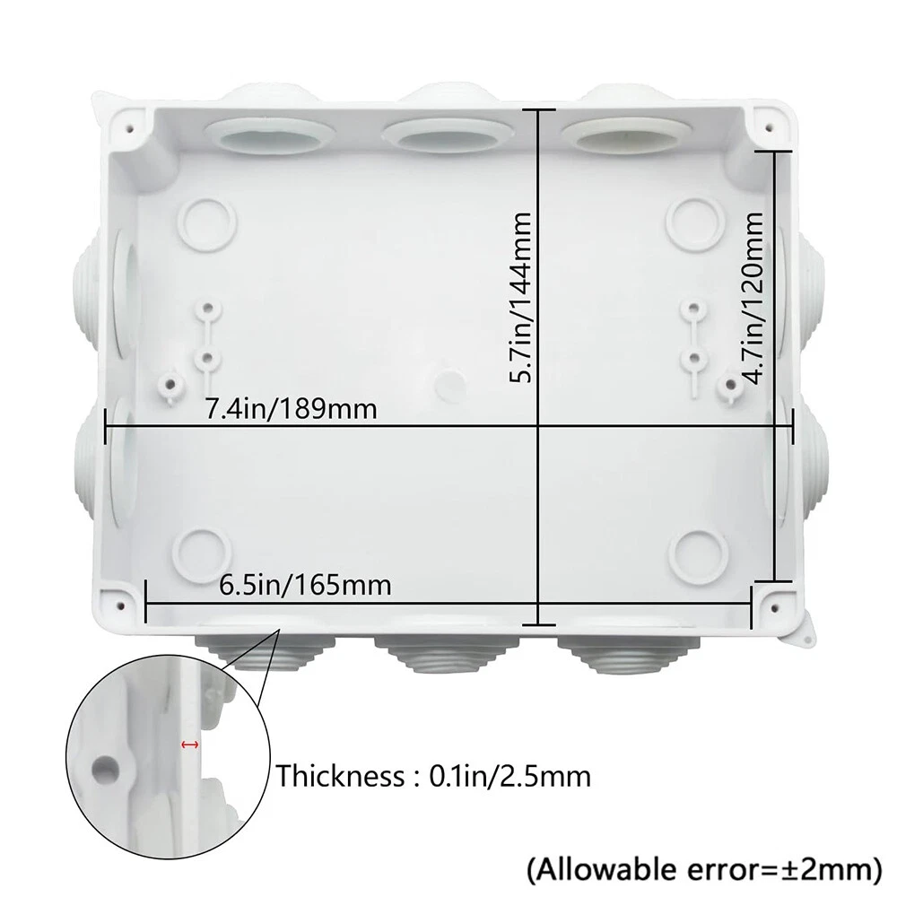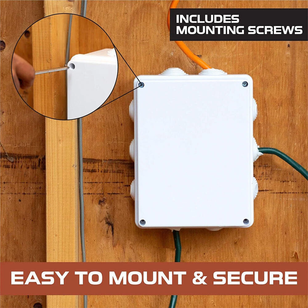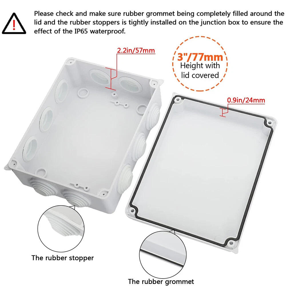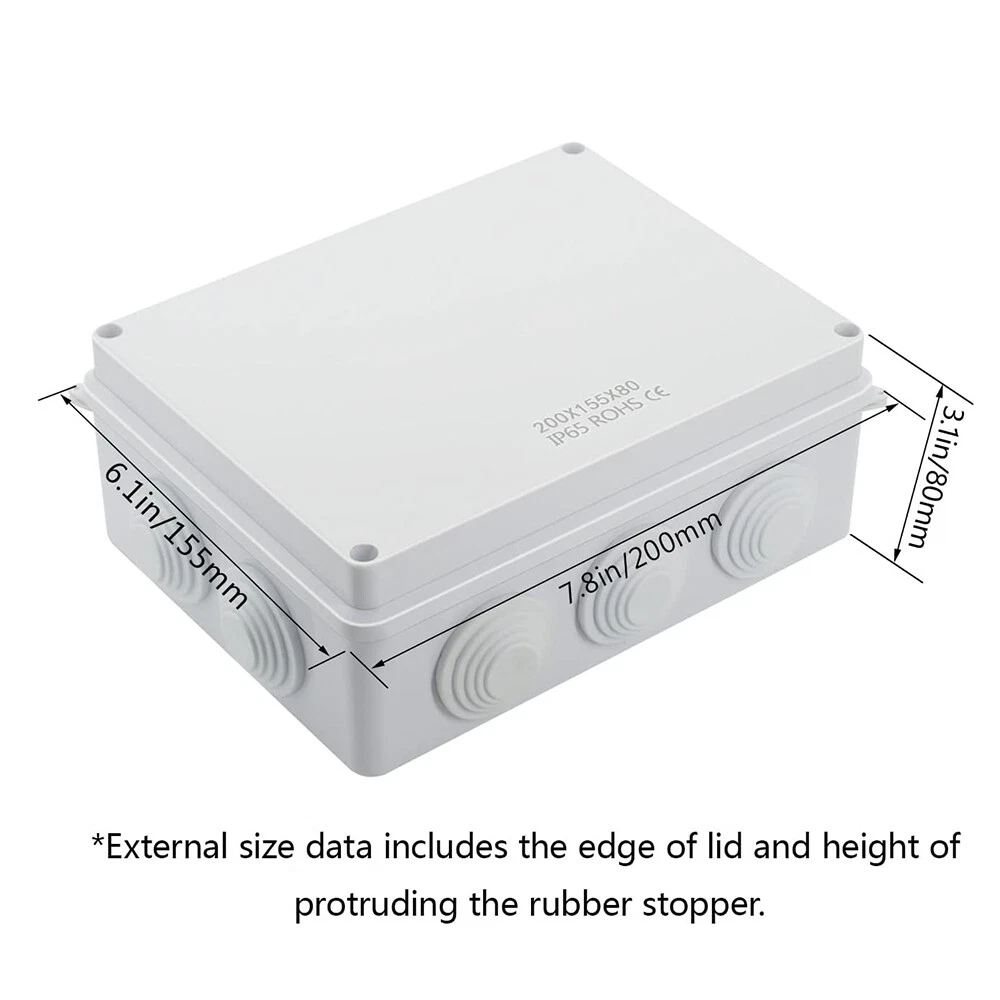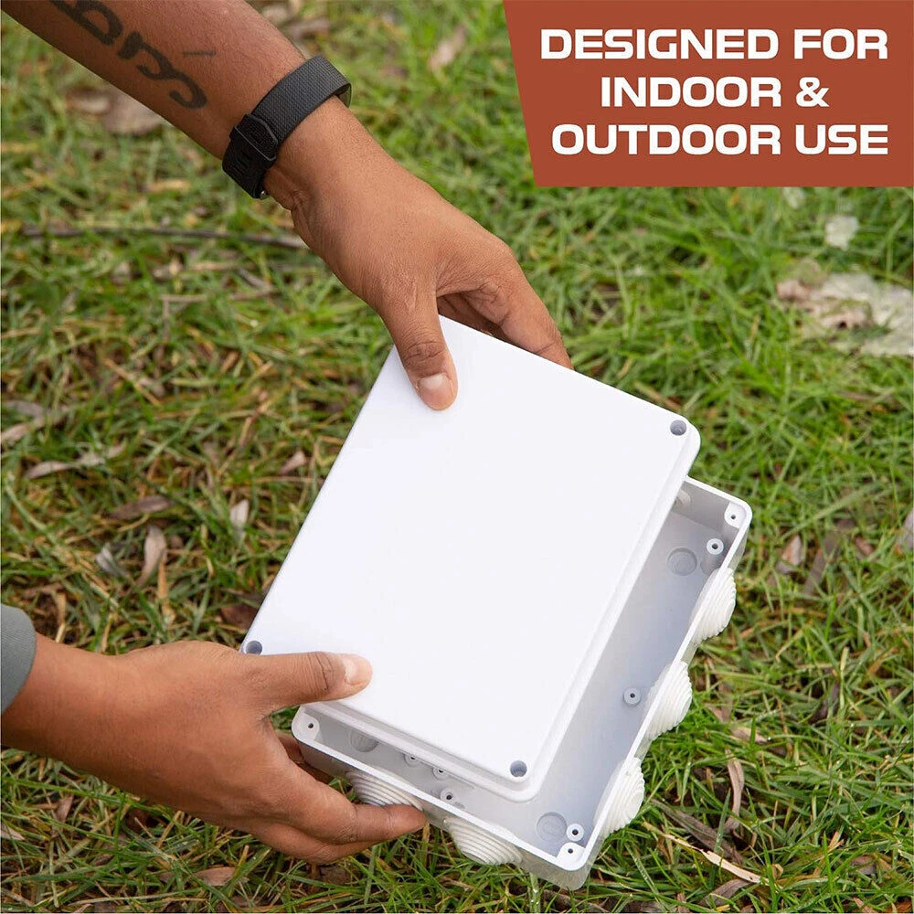 Features: [ Sturdy Construction ] Electrical Junction box is made of high-quality ABS plastic material, which offers excellent impact resistance and electrical insulation. Rest assured that your equipment will be well-protected in harsh environments. [ Safe and Certificated ] With CE RoHS compliant and waterproof rated, the electrical box is free of hazardous substances. The plastic box is predrilled which is easy to install and modify for your project. [ Indoor and Outdoor Use ] With the feature of water resistance and dustproof,it can effectively block splashing water, rain, dust, snow, oil, UV and more. Whether you need to use it indoors or outdoors, this surface mounted project box is easy to operate. [ Extensive Application ] Our junction box is used in a variety of applications: residential homes wiring and connecting electrical devices, such as light fixtures, switches, and outlets; protect and connect electrical equipment for machines, motors etc. Size: 7.87”x6.1"x3.15" Package Included: 1x Electrical Junction Box