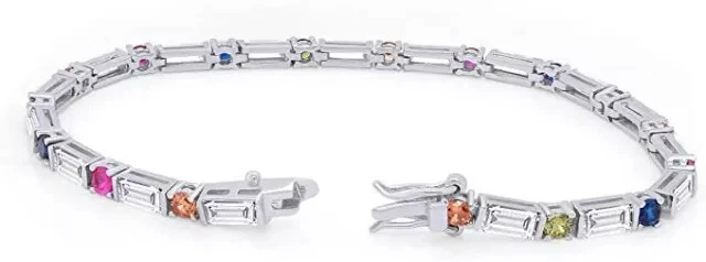 Main Stone Depth: As per picture Seller Warranty: Yes Main Stone Treatment: Not Enhanced Main Stone Width: As per picture Cut Grade: Excellent Setting Style: Prong Number of Gemstones: As Per Picture Handmade: Yes Era: Undated Main Stone Shape: Baguette Features: Engraved Brand: karunas-76 Style: Tennis Sizable: Yes Metal Purity: 925 Gemstone Clarity Grade: NA Color: White Shape: Round Main Stone Color: White Country/Region of Manufacture: India Personalize: Yes Wholesale: Yes Material: Stone, Metal Occasion: Anniversary, Birthday, Christening, Christmas, Engagement, Graduation, Mother's Day, Valentine's Day, Wedding Item Length: As per picture Metal: Sterling Silver Customized: Yes Signed: No Theme: Beauty Type: Bracelet Antique: No Charm Type: Snap Secondary Stone: Diamond Chain Type: Cable Main Stone Creation: Simulated Base Metal: Sterling Silver Main Stone Length: As per picture Country of Origin: India Main Stone: Simulated Diamond Vintage: No Closure: Snap
