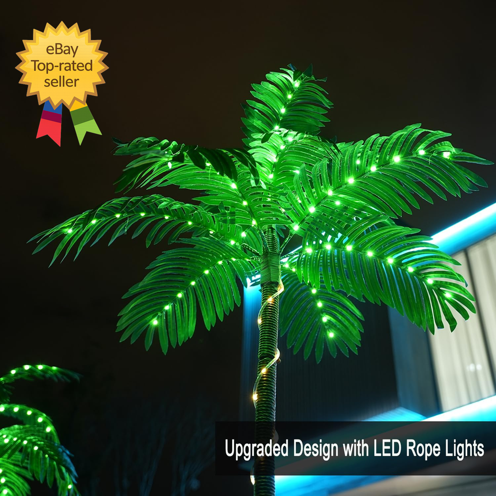 Store New Arrivals Add to Favorite View Feedback Contact 7FT Lighted Artificial Palm Tree with Three Trunks and 260 LED Lights Ideal Description Item Package Quantity 1 Style 7FT Electric Color Green Tree Type Palm Material Polyvinyl Chloride Recommended Uses For Product christmas Seasons All Seasons Palm Trees Warranty : We offer a one-year worry-free warranty and a 60-day money-back guarantee or replacement option. If you have any inquiries or concerns regarding our Artificial Palm Tree, please don't hesitate to contact us. Your satisfaction is our top priority.NOTE : number of items in a pack/box:1 set Realistic lighted Artificial Palm Trees - Indoor/Outdoor:lifelike artificial palm trees are expertly crafted from durable, high-quality plastic for long-lasting beauty. These faux trees boast vibrant colors, a sturdy structure, and timeless, evergreen realism that won't diminish over time. Ideal for both indoor and outdoor settings, our artificial palm tree enhances any space, adding a touch of elegance to every corner. Artificial Tree with Lights Eternal Greenery:The lengthy fronds of this artificial coconut tree maintain its balance and lifelike appearance. It's perfect for filling empty spaces in your home or office, or adding a touch of green to your garden, patio, kitchen, living room, bedroom, entrance, meeting room, hotel, and more. These artificial palm tree plants will preserve their height, texture, color, ribs, and shape for years without the need for pruning or shaping, ensuring lasting aesthetic appeal. Led Palm Tree Outdoor Maintenance-Free Elegance:Our artificial tree maintains its lush appearance day after day, without wilting or requiring watering, sunlight, or soil. Say goodbye to pests and odors – these trees stay insect-free and odorless. Cleaning is a breeze; simply wipe them down with a damp cloth or use a duster. These tropical palm trees are waterproof and can withstand the sun, oils, and heat. Outdoor Led Palm Tree Safe and Reliable Plug Palm Tree:This faux palm tree comes with all the necessary safety certificates and certifications. With a 10ft long plug cord, you can bid farewell to dead batteries and dim lights. Additionally, boasting a waterproof rating of IP54, this artificial tree can be confidently adorned indoors or outdoors. Lighted TreesIndoor/Outdoor-Sturdy 7FT Artificial Palm Tree:Crafted from top-tier materials, our 7FT palm tree features a robust metal trunk encased in durable nylon rope. It stands on a high-quality base, supported by four ground stakes, and includes water bags for added stability, ensuring it stays securely upright. Led Palm Tree Outdoor 8 Modes Simple Assembly, Versatile Lighting:Assembling this artificial palm tree is a breeze. Just unscrew the bottom base, connect the trunk, reinforce it, and wrap the lamp belt. Once the lights are on, you have 8 modes at your disposal: Combination, In Waves, Sequential, SLO-GLO, Chasing/Flash, Slow Fade, Twinkle Flash, and Steady, allowing you to create the perfect ambiance. Palm Tree Handcrafted Elegance, Eco-Friendly:Illuminate your outdoor space with our Lighted Palm Tree Bar, an exquisite Christmas Decor that boasts LED Artificial Trees. Meticulously handcrafted, this 7ft Palm Tree with 3 Trunks (Trunks one 7' Trunks two 3.3' Trunks three 2' depth) and 260 Lights achieves remarkable lifelike realism with its brown trunks and luxuriant green palm fronds. Its sturdy metal base ensures stability and longevity, further reinforced by four substantial stakes. ABOUT US We offer the best prices around on high quality products. Our E-store includes media such as books, movies, music and games while offering electronics, toys, sporting apparel, clothing, tools, general home, garden items and more. SHIPPING We are always working hard to ensure your package arrives as soon as possible. Please understand that some factors like weather, high postal traffic, and the performance of shipping companies are outside of our control. We offer free shipping to the lower 48 states and ship within 2 business days of payment, usually sooner. We do not accept P.O. Boxes. Please provide a physical address. For shipping outside of the continental USA, we only use eBay's Global Shipping Program.The item is shipped to KY and then sent to the rest of the world. International customers are responsible for all duties and taxes. Continue to check out in order to calculate costs for shipping the item to your country. Messages regarding eBay's Global Shipping Program MUST be directed at eBay EXCLUSIVELY. RETURNS We offer a 30-Day Return Policy on items which you are not completely satisfied with. You have the option for a full-refund or an exchange of the item. No returns are available on items shipped outside of the USA. PAYMENT We accept PayPal. CONTACT US This page content is yet to come Please ad us to your favorite seller and visit again later Thank You CUSTOMER SATISFACTION We try our very best to make sure every customer is completely satisfied. If there's a problem, message us! We're happy to help.