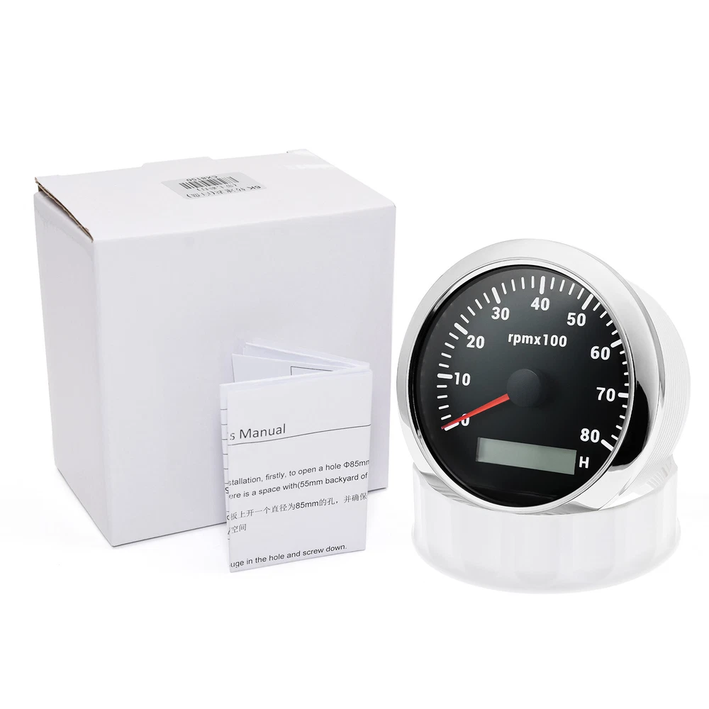 7 Gauge Set GPS Speedometer 0-80MPH Tacho Fuel/Oil Press/Volt/Temp/Trim Gauge 7 Gauge Set 85mm GPS Speedometer 0-80MPH Tachometer with 52mm Gauges Waterproof for Boat Car Feature: High-brightness LED backlight. 316 stainless steel for long-term use even in acid-base, humid environment. IP67 waterproof and dust-proof grade. With curved glass( with anti-fog function). Suitable for all kinds of vehicle modification. Using stepper motor drive pointer, accurate display of the engine speed, and with the LCD display clear display mileage. Gauges have many kinds backlight color (red,yellow,orange,green,blue,purple,white),customers can adjust any color that you like GPS Speedometer Gauge Install Diameter: Φ85mm or 3-3/8" Signal: GPS Working Voltage: 9~32V DC Size: 12x8x12cm / 4.72x3.1x4.75 inch Indication Range: 0-80MPH Backlight:7 Colors Backlight Tachometer Install Diameter: Φ85mm or 3-3/8" Engine hours: 0.0-99999.9H Backlight :7 Color backlight Indicating Range: 0~8000 RPM Signal: Pulse For Tachometer, you can substitute for different unit, please contact us before / after purchase or note on the order. Tachometer: 0-3000rpm/0-4000RPM/6000RPM/7000RPM Fuel Level Gauge Sizes: 52 mm (2-1/16") Measuring Range: Empty - Full Resistance: 240 (E) - 33 (F) ohms Backlight: 7 Colors Water Temperature Gauge Install diameter: Φ52mm Indication range: 0~120℃/30-250℉ Input signal: 287.4~22.4 ohms Storage temperature: -40~+85℃ Backlight: 7 Colors Oil Pressure Gauge Install diameter:Φ52mm or 2-1/16" Indication range:0~10bar / 0-150 PSI Operating temperature:-30~+75 Storage temperature:-40~+85 Backlight: 7 Colors Volt Gauge Sizes: 52 mm (2-1/16") Measuring Range: 8 - 16 (V) Backlight: 7 Colors Trim gauge 7 Color Backlight : Red (default)→green → blue → white →yellow→cyan →Purple →(automatic). Fixing dimension: 52mm(2'') Indicating Range: UP-DN Signal: 0-190ohms Working Voltage: 9-32V(12V/24V) Operation mode: LCD display, stepper motor Package Includes: 1X 85MM Digital GPS Speedometer Gauge 1X GPS Antenna 1X 85MM Tachometer 1X 52MM Fuel Level gauge 1X 52MM Trim gauge 1X 52MM Voltmeter 1X 52MM Water temp gauge 1X 52MM Oil Pressure gauge 7X Installation Instruction Please confirm the size you need before buying