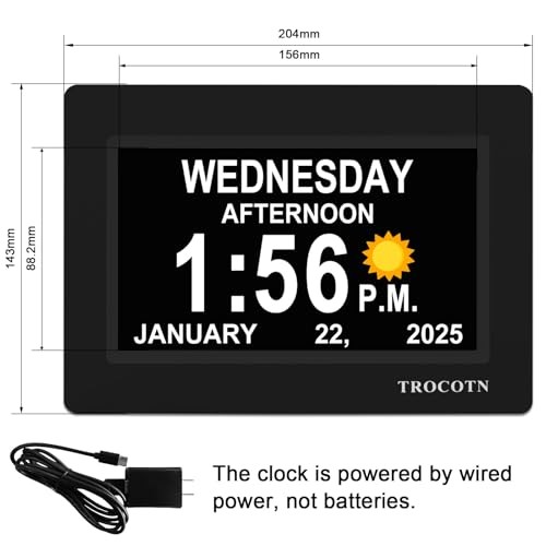 This dementia clock is a game-changer for my elderly mom! The huge, clear display makes it so easy for her to read the time, date, and day at a glance. I love how it automatically adjusts for daylight savings and shows everything spelled out without confusing abbreviations. The multiple display modes and loud alarms work perfectly for her needs. Setup was a breeze, and the long power cord gives flexible placement options. It's been incredibly helpful for keeping her oriented and independent - worth every penny! Fast shipping too!