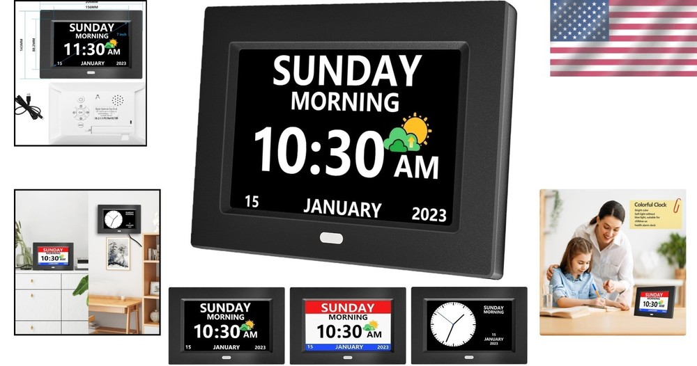 Large Digital Clock for Elderly 7 Inch Display 12 Alarms Auto Brightness ‹ › ‹ › ‹ › ‹ › ‹ › ‹ › ‹ › ‹ › ‹ › ‹ › Large Digital Clock for the Elderly - 7 Inch Display Elevate Your Daily Routine A perfect blend of functionality and elegance, the Large Digital Clock is designed specifically for seniors, enabling them to embrace independence and clarity in their everyday life. With a generous 7-inch display, this clock is more than a timekeeper; it’s a reliable companion. Features: Easy to Read Display: High contrast screen with bold letters clearly presents the time, date, day of the week, and . Customizable Display Modes: Choose from three distinct views - Elderly Clock, Wall Clock, or Colorful Clock, to suit individual preferences. 12 Alarms & 3 Medication Reminders: Help maintain a productive routine with programmable alarms for daily activities such as appointments, exercise, and taking medication. Automatic Brightness Adjustment: Effortlessly dims at night and brightens during the day, ensuring visibility at all times, with three manual brightness settings available. User-friendly Setup: Comes with a clear manual that supports multiple languages and various time formats for a personalized experience. Durable Design: Crafted to withstand daily use without compromising performance, ensuring longevity even in the hands of users with limited dexterity. Benefits: Helps seniors manage their time and responsibilities more effectively. Large display eliminates the frustration of straining to see the clock. Multiple alarms serve as helpful reminders for daily activities, promoting a proactive lifestyle. Sturdy construction ensures resilience against accidental drops and mishaps. Easy setup guarantees no unnecessary techno-stress, making this clock accessible to everyone. Why Choose Our Large Digital Clock? This clock is more than just a timepiece; it enriches the lives of elderly individuals by providing them with clarity and independence. Its elegant design suits any room, while its versatile functionalities make it practical for bedside, desk, or wall display. Empower your loved ones with a tool that supports their daily routines and enhances their lifestyle. Transform the way they perceive time—all while providing peace of mind for family members. Invest in clarity and comfort—order the Large Digital Clock today! Shipping Free & Fast Shipping - We offer free shipping to most of the USA with a normal delivery time of 3-7 days. However, due to the current situation, additional delivery time (up to 3 weeks) may be required for some items. Alternative Carriers - We may use alternative carriers (e.g. USPS, FedEx, UPS, etc.) to ensure your package arrives safely and on time. Due to the use of multiple carriers, we are unable to provide a tracking number automatically. Handling Time - Orders are processed and shipped within 1-2 business days of receiving cleared payment. Shipping Restrictions - Shipping to Alaska, Hawaii, Puerto Rico, Guam, and other US territories may incur shipping charges or delivery restrictions. Please contact us before ordering, or your order can be refunded/cancelled. State Restrictions - There may be restrictions based on your state of purchase. For example, certain items may not be shipped to California due to state regulations. Contact for Tracking Updates - If you require tracking updates or have any concerns about the delivery of your order, please feel free to contact us, and we will be happy to assist you. Return 30-Day Hassle-Free Returns - We want you to be completely satisfied with your purchase. If you are not, you can return the item within 30 days of receiving it for a full refund or exchange. Easy Return Process - To start a return, simply contact us and we will provide you with a prepaid return shipping label and detailed instructions. Restocking Fee - There are no restocking fees for returns. However, the buyer is responsible for return shipping costs if the return is not due to a seller's error. Refund Processing Time - Refunds will be processed within 5 business days of receiving the returned item in its condition. Payment We accept all major credit cards, PayPal, and Apple Pay for your convenience. Your payment information is secure and encrypted to ensure a safe and seamless transaction. Please complete your payment within 3 days of purchase to avoid any delays in shipping. Feedback Your feedback is extremely important to us. We strive to provide the best products and customer service possible. If you are satisfied with your purchase, please take a moment to leave us a positive review. If you have any concerns or issues with your order, please contact us before leaving negative feedback. We are committed to resolving any problems and ensuring your satisfaction. Contact Us If you have any questions or concerns, please feel free to out to our customer support team. You can contact us through the eBay messaging system. We are available Monday to Friday, 9:00 am to 5:00 pm EST, and we will do our best to respond to your inquiry within 24 hours. Buy it now and enjoy a pleasant shopping experience! Unit Quantity: 14.08 oz Features: Alarm,Large Display,Auto Dimmable,Calendar Display,12 Alarms,3 Medication Reminders,3 Display Modes Theme: Plain Room: Bedroom,Living Room,Study Room Material: Plastic Department: Adults Type: Alarm Clock Display Type: Digital Color: Black Movement: Automatic Power Source: Corded Electric Style: Modern Shape: Rectangular Protection Plan: No Coverage Item Height: 5.63 Inches Item Weight: Less Than 1 lb Unit Type: oz