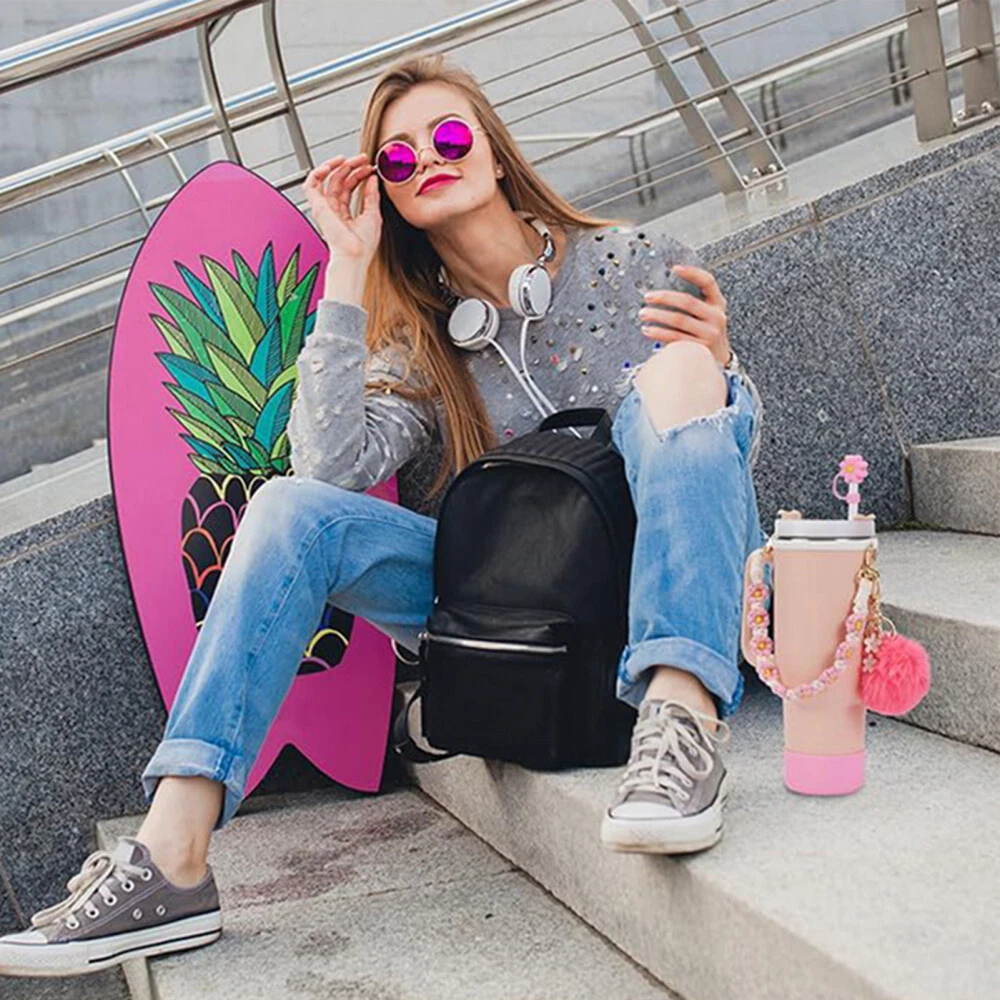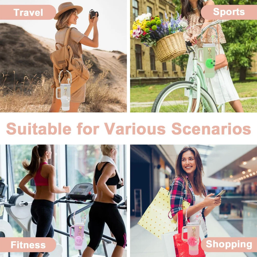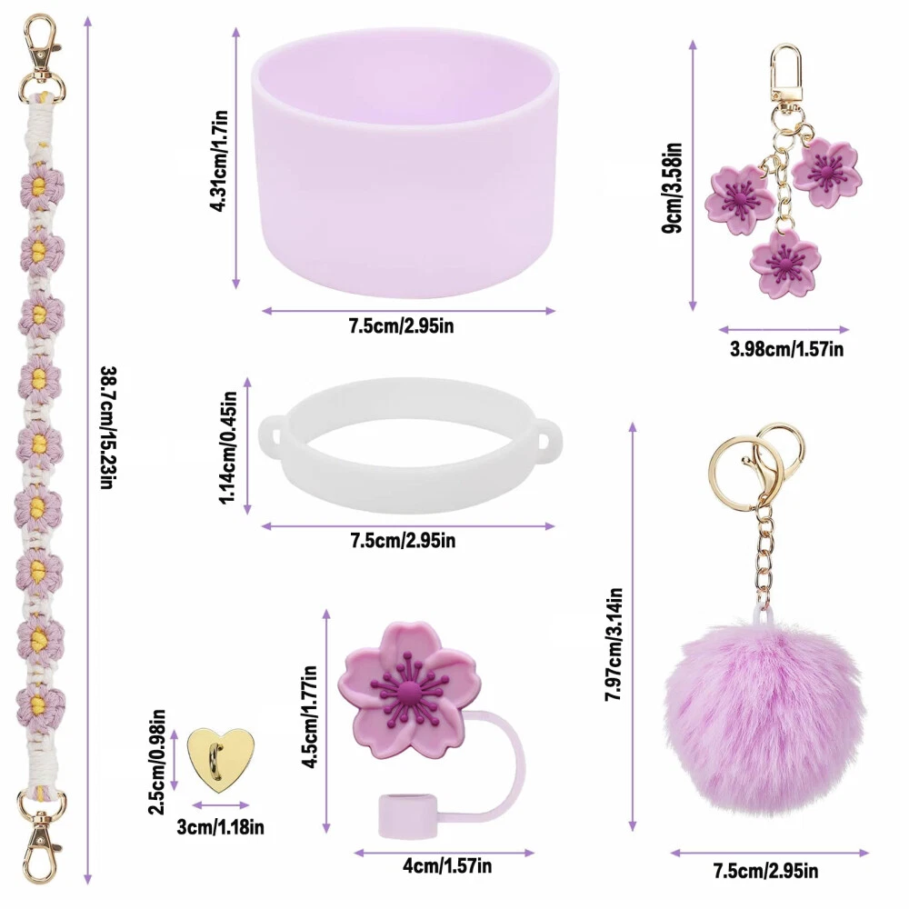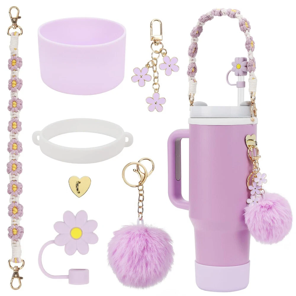 Features: Enhanced for Stanley Cup Experience: Elevate your for stanley cup game with this 7-piece accessories set, designed to enhance your drinking experience with features like handle straps, straw covers, and charms. Premium Silicone Construction: Crafted from premium-quality silicone, these accessories are durable, flexible, and easy to clean, ensuring long-lasting use for stanley cup 40oz & 30oz tumblers. Versatile Outdoor Companion: Whether you're hiking, camping, or cycling, these accessories are the perfect companions for your stanley cup adventures, adding convenience and style to your outdoor activities. Personalized for Stanley Cup Styling: Customize your for stanley cup with the variety of options in this set, including boot covers, straps, and charms, allowing you to express your unique personality and taste. Complete Set for Stanley Cup Owners: This comprehensive set includes everything you need to fully accessorize your for stanley cup, making it a must-have for stanley cup 40oz & 30oz owner looking to enhance their drinking experience. Specification: Material: S ilicone Quantity: 7pcs Color: Green, White, Purple, Pink Handle Strap Length: 38.7cm Notes: Please allow slight tolerances in size due to manual measurement, and lighting in photography may result in a difference in color than in real.