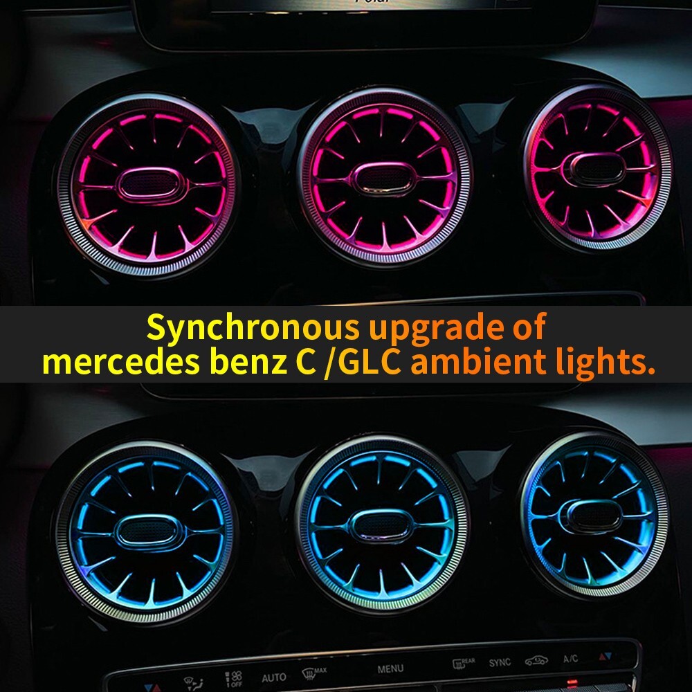 Features: 100% Brand New in Box W205 7PCS/Set 3 Colors NEW Version High Quality Plug and Play Interior Front and Rear Dashboard Air Vent with Ambient Light 1:1 Replacement; NO Modification Required Fitment: For Mercedes Benz C-Class W205 2017 2018 2019 2020 2021( 3 Colors ) - OEM design, fit original air vent position perfectly - Light color is synchronized with original ambient light - Light color and brightness can be controlled by original Command knob Package included: 7 PCS/Set Front and Rear Air Vents with Ambient Light NOTE: NOT Including Installation Guide or Manual. Professional installation is highly recommended .