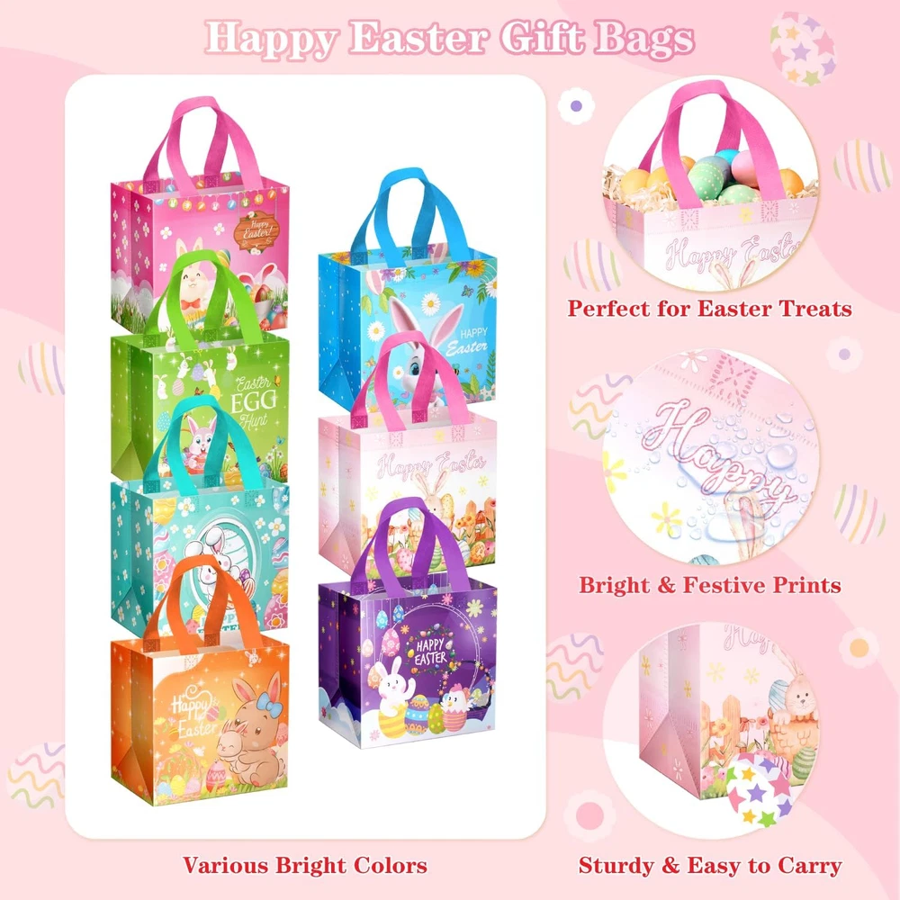 Exun Happy Easter Gift Bags with Handles, Bunny Carrot Chick Designs, Reusable N