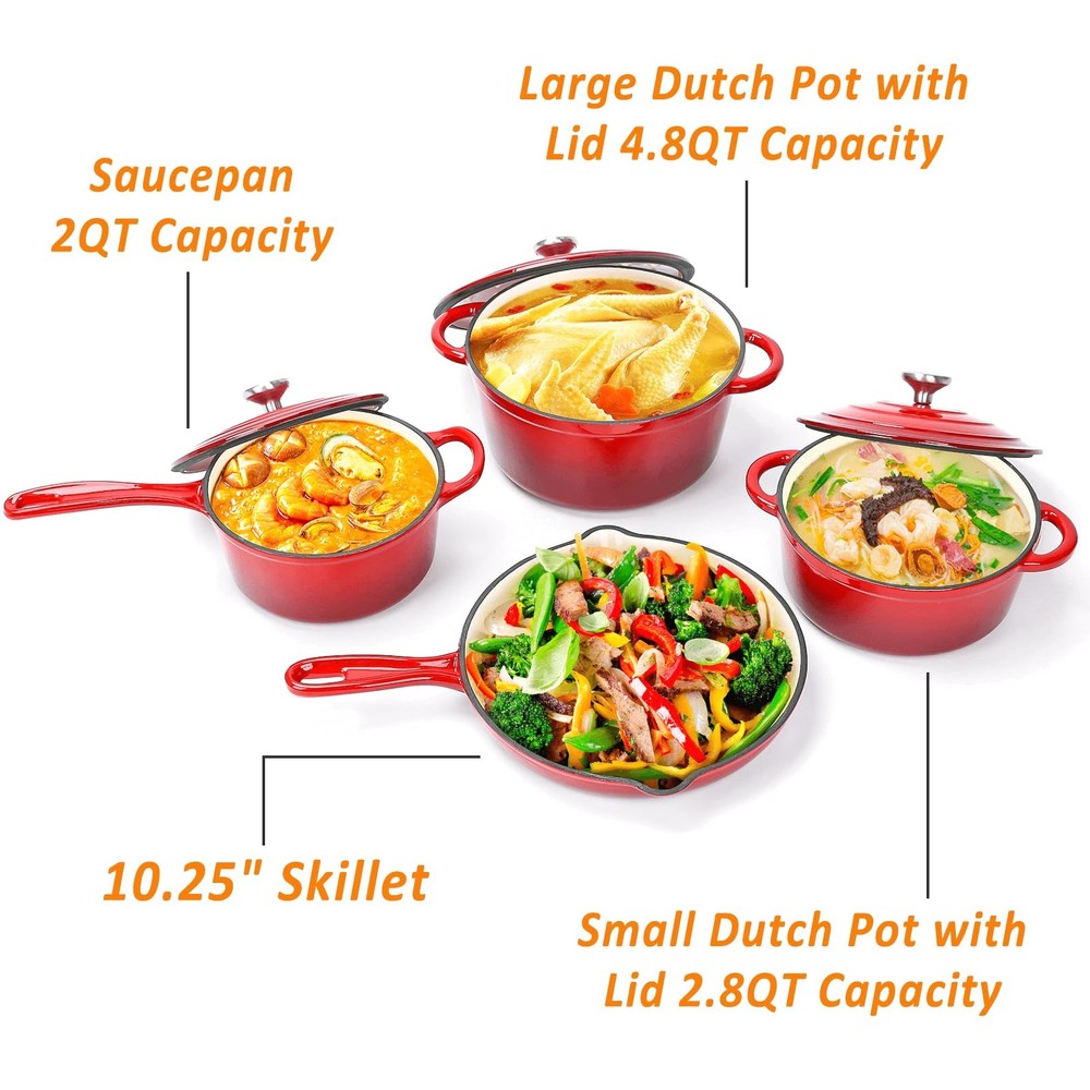 $ 76.83Enameled Cast Iron Cookware Set - 7 Piece Dutch Ovens Set, Sauce Pan, Skillet, 3