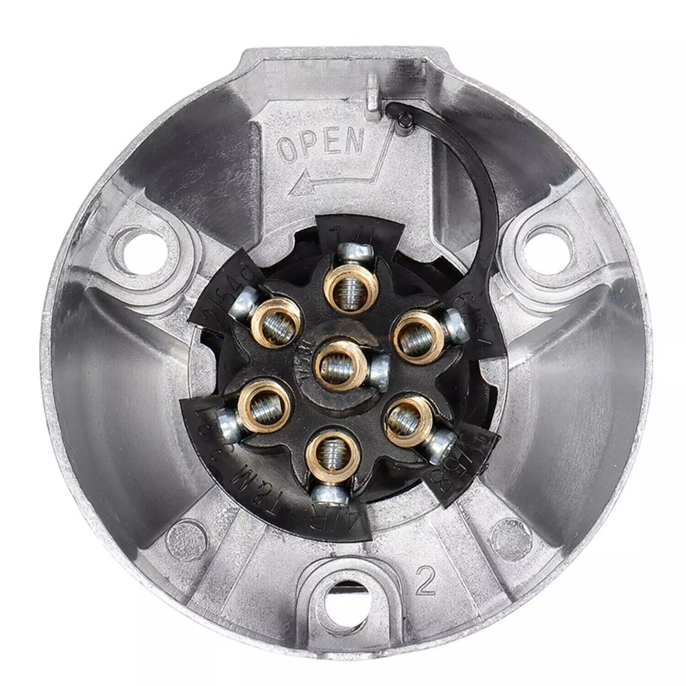 7-Pin round metal socket for Trailer and Camper Electric car Accessories Specifications: Model: 979698 Material: Aluminum Color: Silver Voltage: 12V Features: - Establishes a secure connection between your major vehicle and the additional trailer; - Transfers the electronic signal lights from the vehicle to trailer. - Supplies power to your caravan, towing and truck. - Brass pins in a durable metal housing. Package included: 1X Socket On Nov 4, 2024 at 21:32:34 PST, seller added the following information: