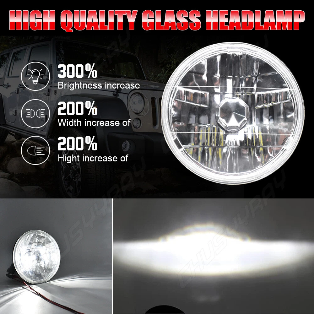 7" Inch Universal Round Cut Chrome Front Clear Glass Lens Diamond Headlights Kit 7" Inch Round Headlight Housing *Black Chrome housing with clear lens design , Lens is made out of clear glass. *Enhance visibility during night time, heavy rain, snow, or dense fog. Precision optics offers a highly controlled concentration of light to enhance visibility. *Direct replacement, easy installation. *High quality O.E grade materials to withstand the most rigorous weather *Compatible For Manufacturer Headlight Part Numbers # H6014 / H6015 / H6024 *These headlights are set up for high and low beams, just simply plug them into your original wiring. *This design is perfect replacement for old sealed-beam round headlight on any vehicle that uses standard 7” bucket. H4 HB2 9003 LED Headlight Bulbs Specifics -Color: 6000K Cool White -Power Consumption: 110 Watt -Luminosity: 11,000 LM -360 Degree / P2 Series CSP Chip Perfect Beam Angle -H4 - Dual Beam Function (You will have HIGH AND LOW!) -500% Brighter than Stock Halogen -Built in IC Circuit (Current Regulator)-Prevents LED Damage From Voltage Variations & Spikes. -Lifespan: 50,000 Hours -Operating Voltage: DC 12V / 24V -Amperage: 1.9A - 2.9A -Maintenance free, Waterproof IP67, Shockproof -Warranty 5 years Top Features 300% Brighter than Halogen: 110W 6000K cool white, 1w=100lm, with clear visibility and perfect beam pattern, so you can enjoy good vision while driving at night. Super Focused Beam Pattern: F5plus led bulbs with 1.0mm ultra-thin centered light emitting. No dark spots or foggy light, do not blind oncoming traffic. 10mins Easy Installation: The LED bulb’s almost 1:1 design as halogen. Plug and play. No other tools are needed 360° Adjustable Beam Pattern: Adopts 360° adjustable locker ring to ensure the best beam pattern. except H1, H3, 880, PSX26W 50,000 hours Lifespan: P2 plus comes with a copper base board, cold pressed aluminum heat sink and 12,000rmp cooling fan. Better solve the dimming or over heated of led bulbs. Information: a)Compatible List can not show up all Car model. Please check the Correct item size of your vechicle. it will work and fit.Thank you! b)If you are unsure the item fit or not , please do remember send message to tell us your car make, model, year and other information which is helpful to check the item fit or not.For example: For 2004 Ford F 150, high/low beam For 2015 RAM 1500 with projector-type, high beam For 2019 Ford F 150 ,XL Crew Cab Pickup 4-Door 2.7L Application: For Any Vehicle models with 7 inch Round headlight,such as: For Jeep Wagoneer (1963-1978) For Jeep CJ-7 (1976-1986) For Jeep CJ-8 Scrambler (1981-1985) For Jeep Wrangler TJ 2 Door (1997~2006) For Jeep Wrangler LJ unlimited (4 Door) (2004~2006) For Jeep Wrangler JK 2 Door (2007~2018) For Jeep Wrangler Unlimited JK 4 Door (2007~2018) For Chevy Camaro (1969-1981) For Mazda Miata MX5 MX-5 (1990-1997) For Honda Civic (1976-1981) For Ford Custom 500 (1971/1976) For Ford F100 Pikcup (1969-1974) For Ford F150 (1975-1979) For Toyota Corolla (1969-1980) For Toyota LandCruiser (1979-1987) For Toyota Pickup (1979-1981) For Oldsmobile Omega (1974-1979) For Plymouth Barracuda (1964-1974) For Plymouth Valiant (1963-1976) For Land Rover Defender 90 (1997) For Land Rover Defender 90 (1995) For Land RoverRange Rover County Classic Sport Utility 4-Door 1995 For Land Rover Range Rover (1987-1995) For Jeep Wrangler (1997-2015) For Land Rover 90/110 1983 to 1991 (including 2.5N/A, 2.5 Turbo, V8) For Land Rover 90/110 Defender 200 Tdi For Land Rover 90/110 Defender 300 Tdi For Land Rover 90/110 Defender Td5 For Land Rover 90/110 Tdci For Hummer H1 H2 (2003~2009) (H2 needs 9007 male to H4 female adapter, package not included) For Lada 4x4 urban Niva For UAZ Hunter For Suzuki Samurai For Kenworth T-2000 1998-2010(Buyer Note, Our Headlight plug is H4,H4-H13) For Puch G and Mercedes G models For 1990-1997 Mazda Miata For 1976-1977 Mazda Mizer For 1979-1985 Mazda RX-7 For 1976-1977 Mazda 808 etc... etc... (Note: 2* T10/501/W5W bulbs will be given to purchase this kit ) (T10/501/W5W Application: Interior Door Light Bulb / side Marker Light Bulb rear / front Tail Light Bulb Inner / License Light Bulb / Glove Box Light Bulb Trunk or Cargo Area Light Bulb/ Dome Light Bulb Check Engine Light Bulb / Courtesy Light Bulb / Parking Light Bulb Center High Mount Stop Light /Dome Light Bulb / Map Light Bulb Door Mirror illumnination light bulb) On Nov 11, 2024 at 03:21:39 PST, seller added the following information: