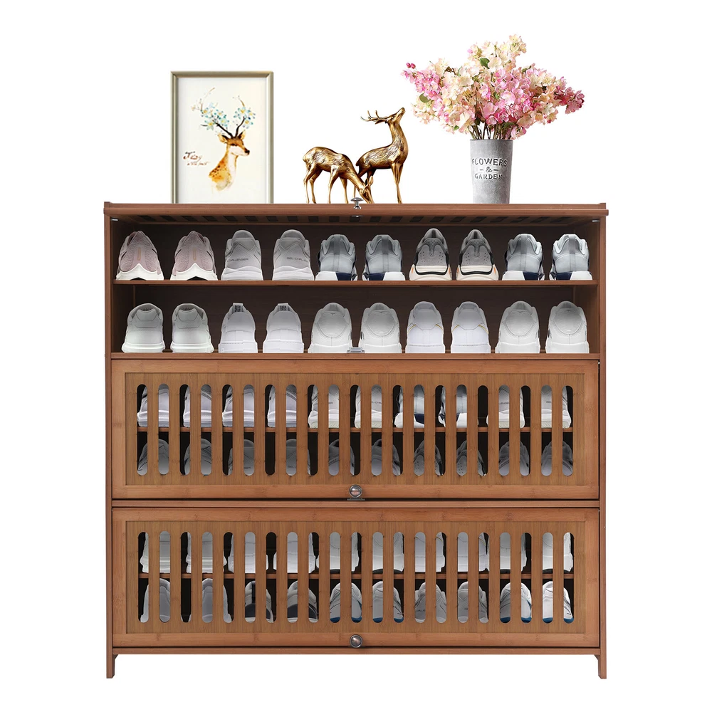This shoe cabinet is a game-changer for small spaces! The flip-up doors save room while keeping shoes neatly organized. Sturdy bamboo construction holds up well, and the modern tawny finish looks chic. Easy to assemble, and the 7 tiers fit plenty of pairs without taking up much floor space. Perfect for keeping entryways clutter-free—love how it maximizes storage while staying sleek!