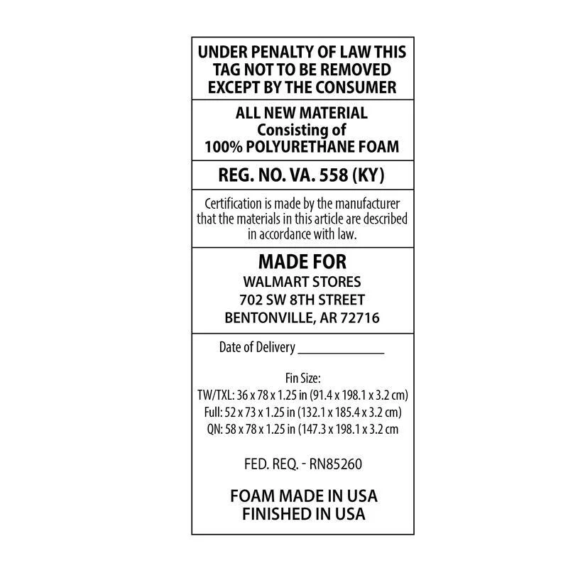 Magnetic Socket Organizer Set 6 PC Tool Holder Box Drawer Holds Storage Durable 43.98 USD 46.79 USD Free shipping 6% off Double Cast Iron Sandwich Cooker Camp Cooking Pies Sandwiches Grilling Meat New 23.26 USD 24.75 USD Free shipping 6% off Portable Propane Water Heater & Shower Pump w/Built-In Battery Compact Outdoor 341.21 USD 362.99 USD Free shipping 6% off Wildflower Whimsy 4-Compartment Wood Coffee Pod Organizer Drawer Storage Floral 48.19 USD 51.27 USD Free shipping 6% off 32" H x 22-1/2" W x 5" D Folding Sawhorse 800 lb Portable V-groove Black 1 pair 60.63 USD 64.5 USD Free shipping 6% off 18" Director's Chair White Frame-Tan Canvas Foldable Built-in Armrests Portable 60.9 USD 64.79 USD Free shipping 6% off 6 Tier Floor-To-Ceiling Shoe Spinner Adjustable w/ Basket Tiered Shelf Organizer 173.24 USD 184.3 USD Free shipping 6% off Sterilite Mini Crate Plastic Home Office Dorm Utility Areas Set of 12 Durable 28.87 USD 30.71 USD Free shipping 6% off 16x 20 in. Magnetic Monthly Calendar Dry Erase Board Office Home Commercial New 15.85 USD 16.86 USD Free shipping 6% off Gray Plastic Baby Play Yard Baby Gates Playard Freestanding 6 Panels Foldable US 81.22 USD 86.4 USD Free shipping 6% off 80 lbs. Capacity Foldable Hitch-Mount Platform 2-Bike Car Rack Cycling Racks New 112.94 USD 120.15 USD Free shipping 6% off 20-Volt 3/8-inch Ratchet Kit (1) 20-Volt 1.5Ah Lithium-Ion Battery Power Tool 151.01 USD 160.65 USD Free shipping 6% off Product details Has your mattress been needing a refresh? The Mainstays 1 ¼ inch 7-zone foam mattress topper is just what you need to achieve the sleep of your dreams. This topper features 7 zones of support that works with your body to offer pressure point relief where it's needed the most. This conventional polyurethane foam topper is designed with numerous channels that allow air to move freely and reduce heat buildup while you sleep. The Mainstays 1 ¼ inch 7-zone foam mattress topper is also treated with antimicrobial technology to keep the polyurethane foam fresher and cleaner by inhibiting the growth of odor and stain-causing mold and mildew. This topper has everything your mattress has been missing and so much more. Wake feeling refreshed every day with the Mainstays 1 ¼ inch 7-zone foam mattress topper. Foam proudly poured in the U.S. Mainstays Foam 7-Zone Antimicrobial Comfort Coil Mattress Pad 7 Zone design with patented comfort coils 3 levels of support: Light support for head and feet, Medium support for shoulders and thighs and Firm support for torso and buttocks Antimicrobial to reduce odor and improve freshness 100% Polyurethane, 100% Hypoallergenic Size: Twin/Twin XL Revolving 4-Tier Steel Shoe Tree Holds 24 Pairs Space Saving Organizer New 52.43 USD Free shipping Rolling Utility Cart Foldable Steel Shopping Cart Durable Wheels Handle New 47.2 USD Free shipping Collapsible Clothes Drying Rack Indoor Outdoor Compact Energy Saving Sturdy New 44.1 USD Free shipping Large Capacity Step-On Trash Can Plastic Waste Container Household Kitchen Use 44.37 USD Free shipping Coated Downrigger Weight 6 lbs Keel Style Smooth Tracking Fish Attractor New 42.63 USD Free shipping Natural Poultry Treat Block Whole Grains Digestive Immune Health 20 lb New 29.73 USD Free shipping Mobile Rolling TV Stand Cart 26-60 Inch TVs Height Adjustable Heavy Duty Wheels 66.15 USD Free shipping 7.5 Qt Pressure Cooker 7-in-1 Multicooker Wide Base Smart Cooking Programs New 155.25 USD Free shipping Adjustable Height Barstool W/ Rounded Back & Chrome Base Kitchen Dining New 98.37 USD Free shipping Vintage Glass Hummingbird Feeder 20 Oz Durable Metal Perches Easy Clean 34.91 USD Free shipping Ab Crunch Trainer Core Strength Portable Ergonomic Home Workout System New 44.94 USD Free shipping Extra Tall Baby Gate Walk-Through Adjustable Safety Stairways & Hallways New 53.99 USD Free shipping