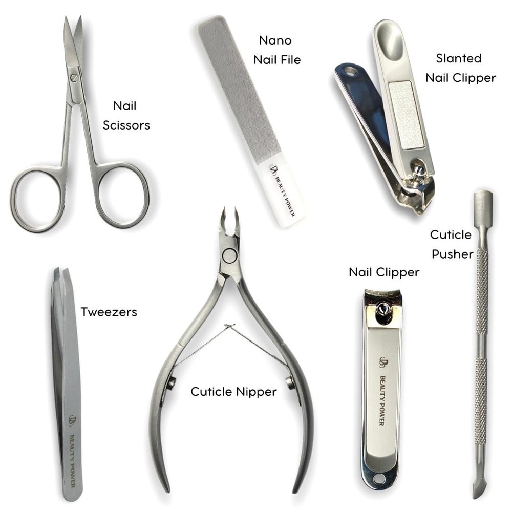 The Ultimate 7-in-1 Manicure & Pedicure Set for Salon-Quality Grooming! Tired of uneven nails and dull grooming tools? The Manicure Pedicure Set is designed for precision, durability, and convenience. Featuring ultra-sharp stainless steel tools, this all-in-one set ensures effortless nail and beauty care, whether at home or on the go. π Why Choose ? π β 7 Essential Tools in One Set β Includes a slanted nail clipper, fingernail clipper, cuticle nipper, glass nail file, eyebrow tweezers, scissors, and a protective case. β Professional-Grade Stainless Steel β Rust-resistant, durable, and ultra-sharp for precision trimming and shaping. β Ergonomic Design for Easy Use β Comfortable grip ensures smooth control and accuracy for perfect grooming results. β Compact & Travel-Friendly Case β Keep your tools organized and protected, whether at home or on the go. β The Perfect Gift Idea β A luxurious and practical gift for beauty lovers, nail care enthusiasts, and self-care fans. Upgrade Your Nail & Beauty Routine Today! Click 'Add to Cartβ for Flawless Grooming Anytime, Anywhere! ALL-IN-ONE GROOMING SET: This 7-in-1 manicure and pedicure set includes everything you need for complete nail and beauty care - perfect for home, salon, and travel use. ULTRA-SHARP STAINLESS STEEL TOOLS: Crafted from high-quality stainless steel, each tool is designed for precision and durability, ensuring clean, effortless grooming every time. ERGONOMIC & EASY TO USE: The slanted nail clipper, cuticle nipper, and tweezers feature an ergonomic design, providing a secure grip for better control and accuracy. STYLISH & PORTABLE CASE: Comes in a sleek pink travel case, keeping your tools organized and protected - ideal for on-the-go touch-ups or gifting. PERFECT GIFT FOR BEAUTY LOVERS: A thoughtful and practical gift for women, men, and beauty enthusiasts. Great for birthdays, holidays, and self-care routines.