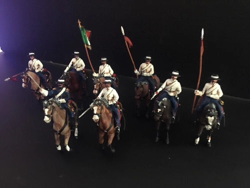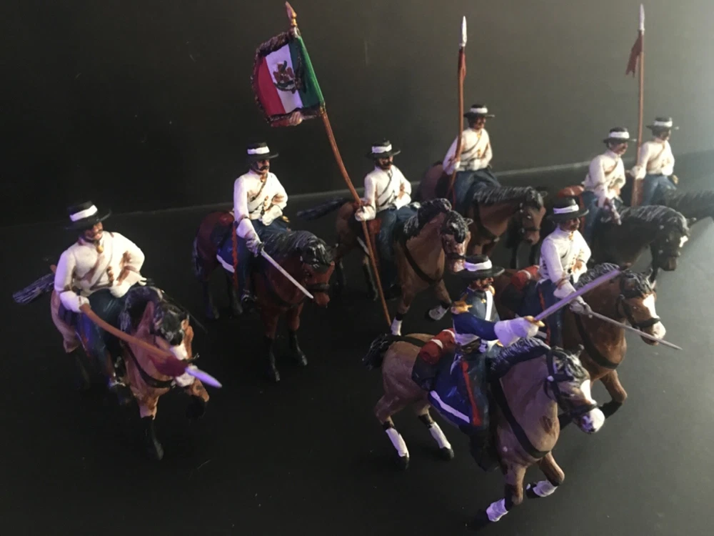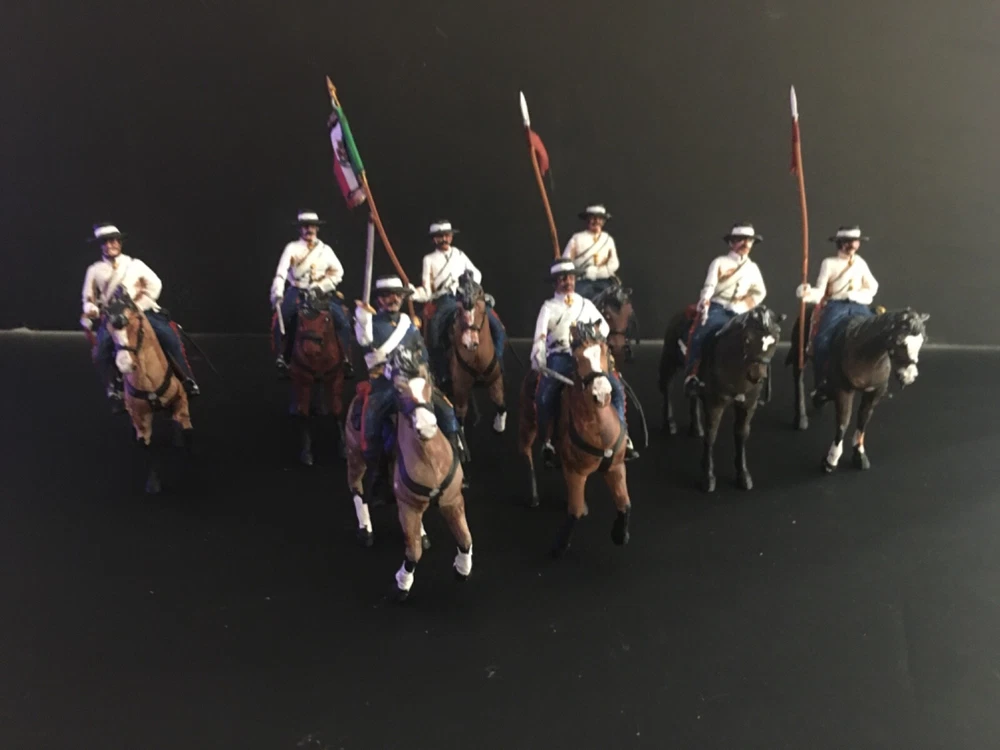 ***8 PAINTED PLASTIC 1/32 MEXICAN WAR - MEXICAN LIGHT CAVALRY W STANDARD BEARER AND OFFICER !!*** This is a nice group of 8 Mexican Troops. This includes a group of 8 Light Mexican Cavalry w Standard Bearer and Officer. Great for Mexican War wargaming or display. We sell other 1/32 and 1/72 scale figures. Shipping is free in the US - overseas is actual cost of mailing. THANKS FOR LOOKING !