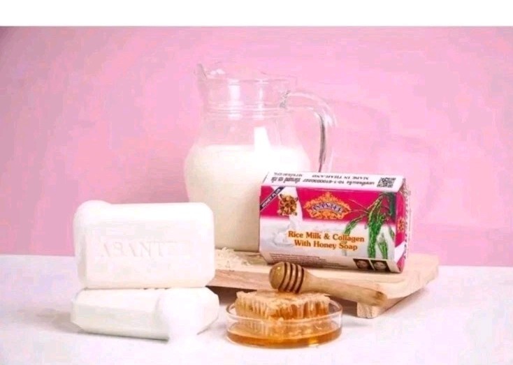 8 Bars - ASANTEE Rice Milk with Collagen and Honey Soap - Skin Whitening 125g..