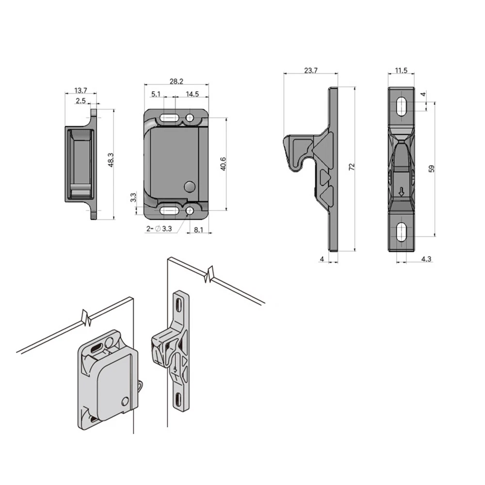 Product Description Features: RV drawer and cabinet door latch designed to stop drawer popping open for most RV to stop squeaking. Greater replacement for your old/broken/worn out cabinet latches. You will need it for your home, RV, Trailer, Motorhome and much more places. Cabinet Catch and Keeper is not only used for cabinet, drawer, sliding doors, screens doors on RV, but can be used for cabinet and drawer in home kitchen, room,office for more safety as well. No ability for children and ets to open drawers, No hurt to your children with cabinet door latches, No mess made by your lovely dogs or cats. All high impact ABS material, strong push latches to keep doors/boards closed with 8 lbs pull force, which is a perfect strength for adults.Pretty tight drawer latch, you have to open it with more strength than ever. No Cabinet opening automatically while on the way. No issue after we tested on most RV, office, home drawer of cabinet thousand times.Sturdy and durable RV drawer latches and catches. Specifications: Unit Count: 8.0 Count Mounting Type: Drilling Color: Black Material: ABS Pakage include: 8PCS Cabinet Door Latch (Not include screws) If you have any doubts or uncertainty about this item, contact us with no hesitation, we are always here and will solve your problems. Thanks and wish you a nice day! About Us We dedicated to provide excellent products and services for all customers on ebay. hope we all can have a nice experiences on eBay. Payment We accept all verified payment through PAYPAL payment. Shipping Usually, Item will be shipped within 1-2 working day after full payment is received. Normally, you will receive the item in 5-7 days. Please contact us if you don’t receive the items after 10 working days after the payment If you have any questions about shipping, please feel free to contact us. Returns Always believe we can solve problems by communication if it comes to any problems about products or any others. If it comes to a return, the products must be intact and as original when you received, and should be within 30 days after you received it. Contact Us Work time: 9:00 AM to 18:00 PM Beijing Time You can contact us at anytime you want, we will reply all messages at the first time. powered by