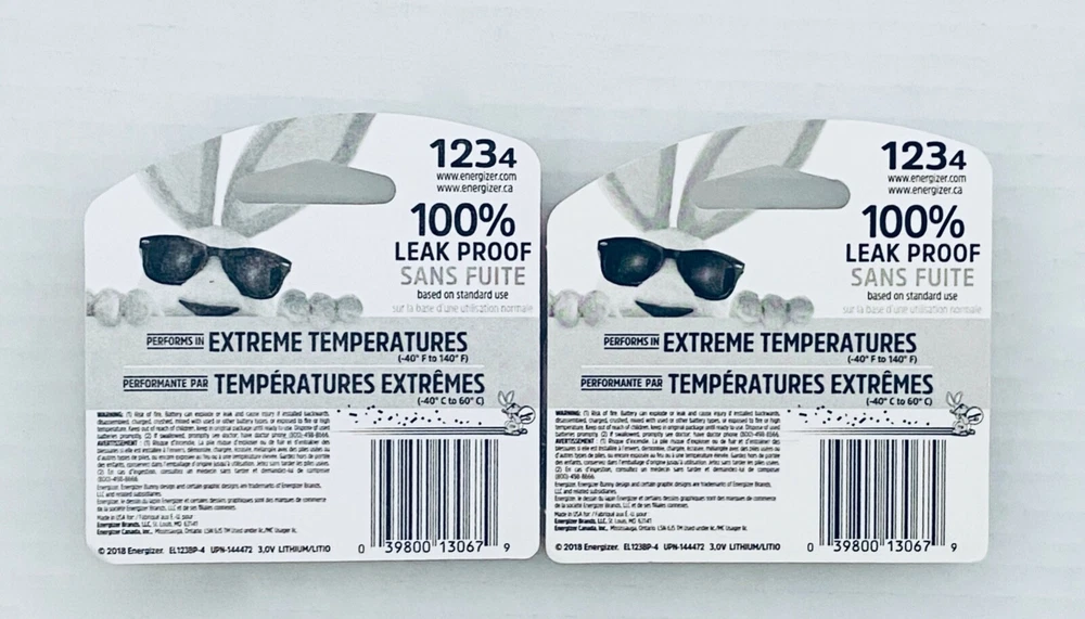 ENERGIZER 123 LITHIUM BATTERIES 2 PACK - 4 COUNT PER PK. | 8 BATTERIES TOTAL EXPIRATION DATE 12/2030 BRAND NEW & FACTORY SEALED
