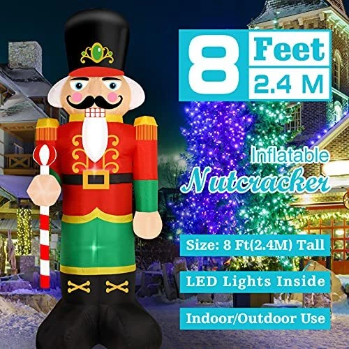 30 Days Return Policy Fast Delivery Trusted seller 8 Feet Christmas Inflatable Nutcracker Lighted Blow Up Christmas Yard Decoration with Built in Fan and Anchor Ropes (02-Nutcracker) Product Description Illuminates Holiday Cheer- This Christmas nutcracker inflatable comes with a set of interior lights to illuminate your yard for maximum joy that the whole neighborhood can see and enjoy! Easy To Set Up- Inflatable Christmas nutcracker includes all you need to set up quickly and easy including yard stakes, blower fan and tether ropes! Stands Out- This Christmas inflatable nutcracker stands at 8 feet tall making it one of the biggest and most attractive inflatable Christmas decoration around! Inflates Quickly- Simply attach your blower fan to your Christmas inflatable and plug it in and your inflatable snowman will be ready to spread joy in seconds! Great For Any Occasion- Perfect decoration for parties, lawns and festivals! Can be used both inside and outdoors! Shipping Returns Payment Shipping Shipping is FREE to all addresses other than APO/PO boxes in the lower 48 states. All our stock ships from US-based warehouses. Shipped via USPS or UPS (depending on location and package weight) Unless stated otherwise, all orders will ship within 24-72 hours of your payment being processed. Check our feedback to see the great reviews of FAST shipping we offer. Returns As our valued customer, we will do our best to make sure the product you receive arrives to you on time and as expected. If you are not satisfied with your purchase, please contact us within 30 days of receiving your order to process a return. Payment We currently accept payment via eBay managed payments only. Once payment is cleared, we will dispatch your shipment within 1-3 business days. Please refer to the "Shipping" tab for more information regarding shipping speed to your destination.