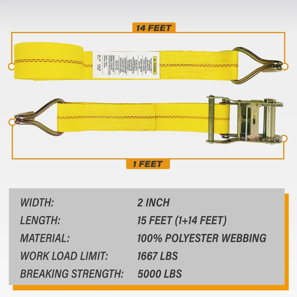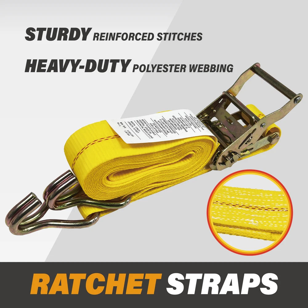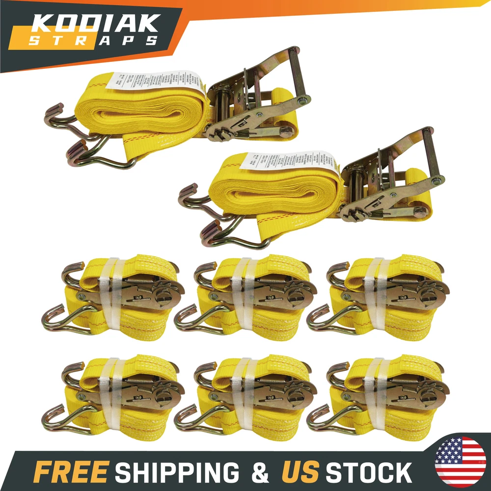 KODIAK STRAPS 8 Pack 2"x15' Ratchet Straps With Double J Hooks 5000LBS Load Wired J Hooks. WLL 1667LBS/ BS 5000 LBS. Made For Long Term Use. EASY TO USE. MONEY BACK GUARANTEE. Package Includes: 8Pack x 2" x 15' Ratchet Straps KODIAK STRAPS 8 Pack 2"x15' Ratchet Straps With Double J Hooks 5000LBS Load Wired J Hooks – These J hooks can be attached to many types of tie down anchor points on trailers and truck beds and secure heavy loads and large equipment. WLL 1667LBS/ BS 5000 LBS – Our ratchet straps are constrcuted of rugged and zinc-coated steel and high-tenacity , heavy duty polyester webbing, providing a working load limit of 1667 lbs and a minimum breaking strength of 5000 lbs. Made For Long Term Use – The Stiff yellow webbing is water and UV ray resistant, they won’t shrink or stretch even when wet, ensuring the most reliable securement throughout the bumpiest rides. EASY TO USE – 1. Open the ratchet strap by lifting the lever and threading the loose strap end around the bottom rod of the spindle (ratchet handle) 2. Pull the excess webbing through and pump the strap tight until it is wrapped securely around your cargo load 3. Clip the lever down and your load is secure! MONEY BACK GUARANTEE – Your satisfaction is our number one priority. Therefore, we offer a 30 day hassle free money back guarantee for your peace of mind. Package Includes: 8Pack x 2" x 15' Ratchet Straps View KODIAK Stroe Shipping About Us Return & Replacement Warranty Contact us Shipping We only ship to the lower 48 states, no APO/FPO addresses or PO Boxes are allowed. If you have not received your package, please contact us first. FREE SHIPPING: We offer free shipping on all orders. 1 BUSINESS DAYS SHIPPING OUT DELIVERY DAYS: 1-7 BUSINESS DAYS WAREHOUSE in CA & NJ & TX: Select the nearest and fastest warehouse for shipping. About Us Welcome to our store. Kodiak Straps committed to delivering superior cargo control products. We manufacture and sell professional and quality trailer, truck, ATV, UTV, motorcycle tie downs, as well as professional and quality slings. We always keep improving and innovating our product line for a better customer experience. Your feedback are significant to us! We are a new established brand [2018]. We are the source factory manufacturingCargo Control Products since [1998]. We are a group of Millennial professionals whodevoted to delivering our valuethrough our products. 🖱 CLICK HERE TO VISIT KODIAK STRAPS STORE Return & Replacement Return & replacement accepted. Items must be returned within 30 days from the date you purchased them. The buyer will pay for return shipping. Any product you return must be in the same condition you receive it and in the original packaging. If you need to return or have a replacement, please contact us first. Warranty Limited Lifetime warranty. If you have a problem with your item, please contact us and we will provide you with a satisfactory warranty program. Please check the item carefully after receiving it. If it's your own fault, any damage will not be covered. Contact us If you have any queries, please contact us via eBay. We will respond within 12-24 hours. 💬 CLICK HERE TO CONTACT KODIAK STRAPS