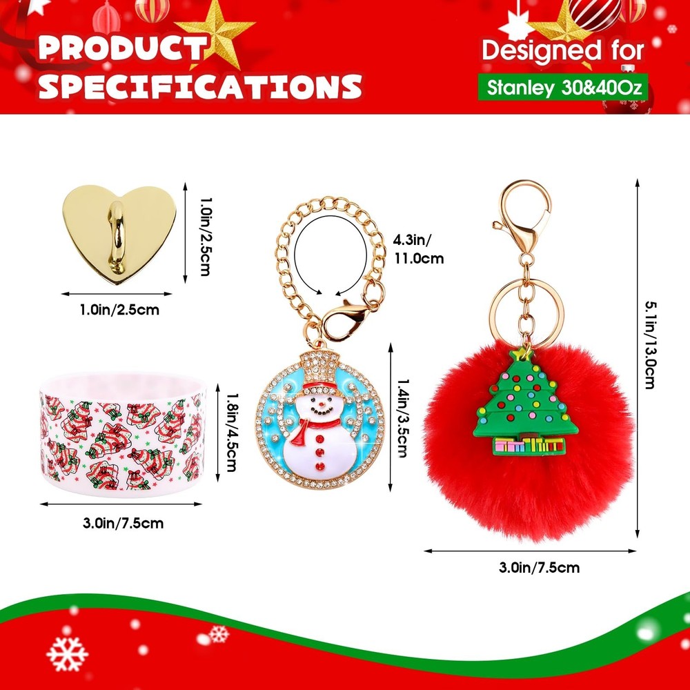 8 Pcs Christmas Accessories Set for Stanley Cup 30&40 Oz, Silicone Christmas Tree Boot 2Pcs Straw Covers Pom-Pom Charm Snowman Charm Water Bottle Handle, Christmas Decor Gifts for Girls Women Product Details Style: Snowman Brand: WINOWIMO MPN: CMB3 UPC: 611419817693 EAN: 0611419817693 Brand: WINOWIMO Color: Multicolor Special Feature: Lightweight Style: Snowman Theme: Christmas Brand: WINOWIMO Color: Multicolor Special Feature: Lightweight Style: Snowman Theme: Christmas Included Components: Christmas Charm, Pom pom charm, Silicone Boot, Straw Cover, Water Bottle Strap Shape: Cylinder Pattern: Christmas Product Care Instructions: Hand Wash Only Age Range (Description): Adult Material Feature: BPA-free, Heat Resistant, Unbreakable Reusability: Reusable Unit Count: 1.0 Count Product Dimensions: 3"W x 1.8"H Number of Items: 1 Customer Package Type: standard packaging Manufacturer: Dongyangshixinhengdianzishangwushanghang UPC: 611419817693 Size: 30 Ounces Item Weight: 4.2 ounces Item model number: CMB3 Date First Available: September 6, 2024 CHRISTMAS ACCESSORIES FOR STANLEY: This Christmas themed accessories set includes 1 pc water bottle strap, 1 pc rubber cup ring, 2 pc silicone Christmas tree cake & gingerbread man straw caps, 1 pc Snowman handle charm, 1 pc pom-pom keychain, 1 pc silicone Christmas tree boot, and 1 pc charm hooks, which are compatible with Stanley Cup 30 oz, 40 oz, and most tumbler brands PREMIUM MATERIAL: The silicone Christmas Tree Boot and Santa Straw Covers are made of premium silicone, which are ultra-soft and protective. The water bottle strap is made of premium ABS material, sturdy and lightweight. Santa charm is made of metal material, decorated with shiny and beautiful rhinestones. The pom-pom keychain is made of artificial rabbit fur with Christmas Tree charm which is fashionable and beautiful CHRISTMAS-THEMED DESIGN: Each tumbler Christmas decoration is infused with Christmas elements and bright colors. From Santa straw cap to Christmas tree boots, each of them is full of holiday joy and warmth, which can make you noticeable at holiday parties and create a strong holiday atmosphere MULTIFUNCTIONAL & PRACTICAL: The silicone Christmas tree boot is not only a beautiful decoration for your tumbler but also protects the bottom of your cups. The straw caps come with two styles which can keep your straw clean. Every water bottle handle is hand-strung and can make you carry your tumbler easier GREAT GIFTING OPTION: This water bottle accessories set is a perfect Christmas gift for women, girls or any tumblers lovers, because it is designed with a strong Christmas vibe, and each accessory makes your tumblers shining on the holiday. This Christmas accessories set is ideal for gifting to friends, family, or coworkers, suitable for Christmas, birthdays, and other occasions to show your care and taste