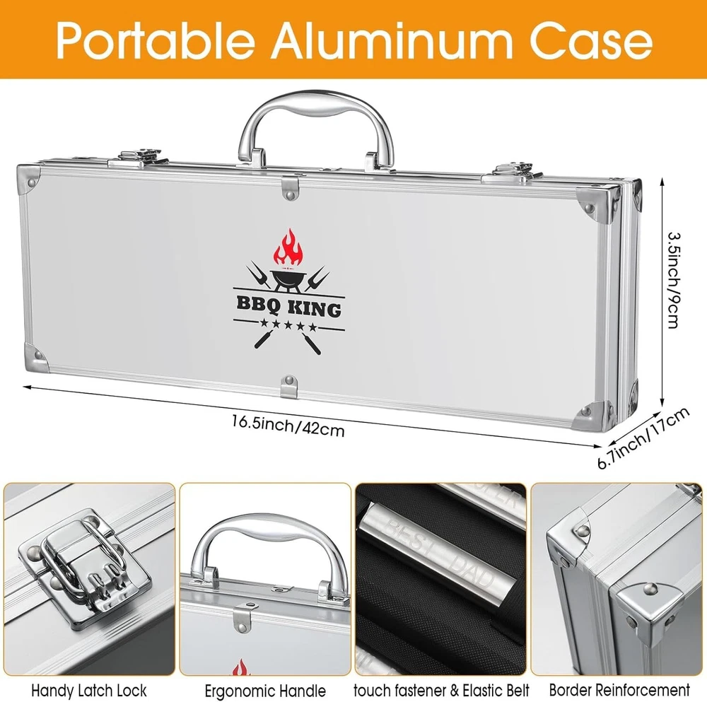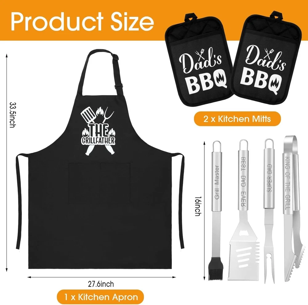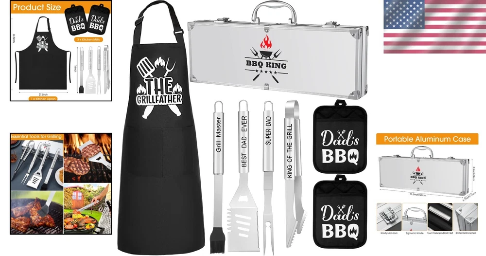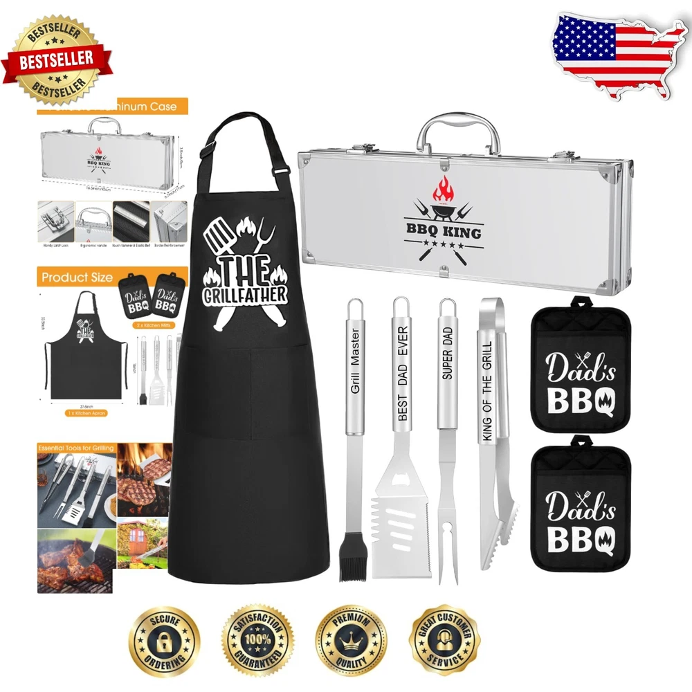 8 Pcs Stainless Steel BBQ Accessories Kit for Dad - Durable Grillfather Design ‹ › ‹ › ‹ › ‹ › ‹ › ‹ › ‹ › ‹ › ‹ › 8 Pcs Stainless Steel BBQ Accessories Kit for Dad Durable Grillfather Design Comprehensive Grilling Set: No grilling enthusiast should miss out on our complete package; it includes a multi-purpose spatula, a grill fork, a pair of tongs, a basting brush, a dad apron, a pair of black kitchen mitts, and a durable uniquely customized aluminum carrying case. Grillfather Design: Boast your barbecue skills with our stylish grilling set; specially designed with grilling patterns and dad-related words, such as 'The Grillfather'. This makes for an ideal birthday gift for the grilling lover dad on your dad gift list. Features: Secure and Convenient: Our grilling set comes with a sturdy aluminum carrying case, ensuring easy and safe storage of the tools, protecting them from damage, and allowing easy transportation. Strong and Durable Set: Each tool is made out of strong stainless steel, ensuring they won't bend or break while grilling; the mitts and apron provide protection from heat and spills. Material for Long lasting Use: Crafted primarily from stainless steel and polyester fiber, the tools endure frequent usage and are resistant to rust. Essential Tools for Grilling: From the multi-purpose spatula to the basting brush, each tool performs its role effectively, giving you the ultimate grilling experience. Specifications: Material: Mainly stainless steel and polyester fiber Color: Apron: mainly black; Kitchen mitts: mainly black; Stainless steel BBQ tools: silver Package Includes: 1x Multi-purpose spatula 1x Grill fork 1x Tongs 1x Basting brush 1x Aluminum carrying case 1x Apron 2x Kitchen mitts Notes: Manual measurement, please allow slight errors on size. The color may exist a slight difference due to different screen displays. Celebrate the grilling passion in your life! Discover the perfect gift for the dad who loves to grill with our Grillfather themed BBQ accessory kit. Each thoughtfully crafted tool not only embodies unparalleled quality but also a heartfelt connection, making every barbecue a memory in the making. Shipping Free & Fast Shipping - We offer free shipping to most of the USA with a normal delivery time of 3-7 days. However, due to the current situation, additional delivery time (up to 3 weeks) may be required for some items. Alternative Carriers - We may use alternative carriers (e.g. USPS, FedEx, UPS, etc.) to ensure your package arrives safely and on time. Due to the use of multiple carriers, we are unable to provide a tracking number automatically. Handling Time - Orders are processed and shipped within 1-2 business days of receiving cleared payment. Shipping Restrictions - Shipping to Alaska, Hawaii, Puerto Rico, Guam, and other US territories may incur shipping charges or delivery restrictions. Please contact us before ordering, or your order can be refunded/cancelled. State Restrictions - There may be restrictions based on your state of purchase. For example, certain items may not be shipped to California due to state regulations. Contact for Tracking Updates - If you require tracking updates or have any concerns about the delivery of your order, please feel free to contact us, and we will be happy to assist you. Return 30-Day Hassle-Free Returns - We want you to be completely satisfied with your purchase. If you are not, you can return the item within 30 days of receiving it for a full refund or exchange. Easy Return Process - To start a return, simply contact us and we will provide you with a prepaid return shipping label and detailed instructions. Restocking Fee - There are no restocking fees for returns. However, the buyer is responsible for return shipping costs if the return is not due to a seller's error. Refund Processing Time - Refunds will be processed within 5 business days of receiving the returned item in its original condition. Payment We accept all major credit cards, PayPal, and Apple Pay for your convenience. Your payment information is secure and encrypted to ensure a safe and seamless transaction. Please complete your payment within 3 days of purchase to avoid any delays in shipping. Feedback Your feedback is extremely important to us. We strive to provide the best products and customer service possible. If you are satisfied with your purchase, please take a moment to leave us a positive review. If you have any concerns or issues with your order, please contact us before leaving negative feedback. We are committed to resolving any problems and ensuring your satisfaction. Contact Us If you have any questions or concerns, please feel free to reach out to our customer support team. You can contact us through the eBay messaging system. We are available Monday to Friday, 9:00 am to 5:00 pm EST, and we will do our best to respond to your inquiry within 24 hours. Buy it now and enjoy a pleasant shopping experience! UPC: Not Set Unit Quantity: 8 Pcs Set Includes: Not Set Features: Easy Clean,Rust Resistant,Durable,Multifunctional,Stainless Steel,Portable,Compact,Lightweight,Heat Resistant,Heat Protection Type: BBQ Tool Set Brand: Unbranded Number in Pack: 8 Color: Black Handle Material: Stainless Steel Item Weight: 3.85 lb Size: Medium Head Material: Stainless Steel Finish: Polished Country/Region of Manufacture: Not Set Item Height: Not Set Item Width: Not Set Year Manufactured: Not Set Number of Items in Set: Eight-Piece Style: Contemporary Model: Not Set Manufacturer Warranty: Not Set MPN: Not Set Unit Type: lb Personalize: Not Set