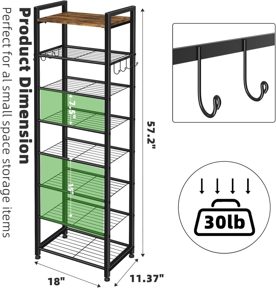 About this item 8-TIER SHOE RACK: This shelves fit boots, high heels or slippers and hold 16 pairs of shoes.The top board can hold bags keys and other small items MULTIFUNCTION: In the kitchen, set the kitchenware and cutlery, In the living room, the shelves can hold sundries,Put it in the closet and keep the clothes neat, Make the utility room looks cleaner SPACE SAVING: This compact shoe rack cabinet can be placed in a tight space in a closet to do the same job with a smaller footprint, maximizing storage space while saving space through higher tiers DURABILITY: Made of thickened metal tube with power coated finish which is smooth and with strong corrosion resistance EASY ASSEMBLY: Simple structure design makes it very easy to assemble