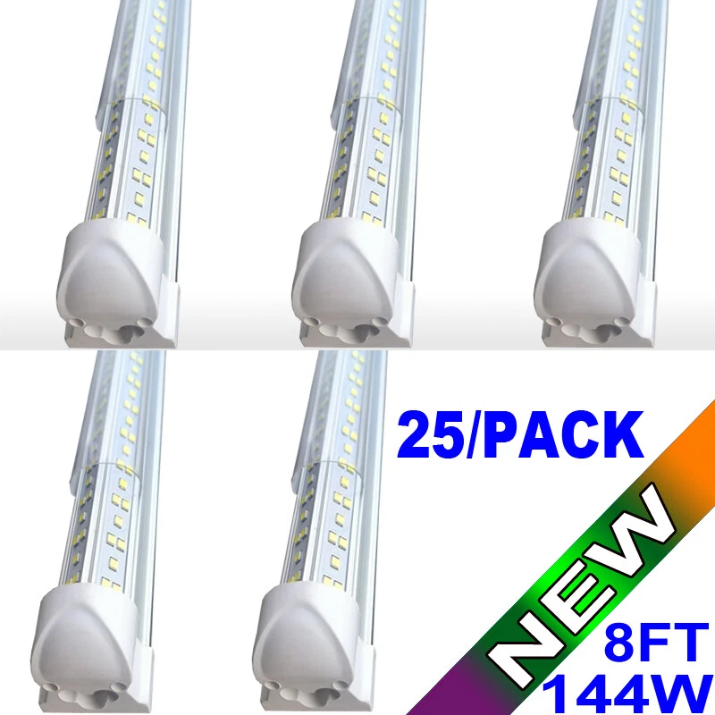 FAST DELIVERY - Ship from New Jersey or Los Angeles Warehouse via FedEx , 3-7 Days Delivered Your Door . SCIENTIFIC DESIGN - 8Ft LED Shop Lights Fixture is Made of 6500K Cold White SMD2835 LED Chip ,Plastic Clear Cover , Aluminum Bracket Housing ,and AC85-277V Constant Current Driver . It can work in -68F to 120F Temperature Conditions EASY INSTALLATION - The Integrated Tube Fixture Can be Install on Wall or Ceiling ,Easily Replace Traditional Fluorescent Tube Bulb . Plug and Play , Free Accessories (Power Cords, Connector , Extension Cords , Clip and Screw ) Come with Tube Lights Together WIDE APPLICATION - Linkable 8Ft Bulbs Widely Used in Garage Ceiling , Barbershop , Schools, Hospitals Basement , Factory Warehouses , Supermarkets Cooler Door , Offices, Shops,Hotels, etc 8' led shop lights 144w led Strip Lights 25PC Cold White LED Garage Lights×25 FAST DELIVERY - Ship from New Jersey or Los Angeles Warehouse via FedEx , 3-7 Days Delivered Your Door . SCIENTIFIC DESIGN - 8Ft LED Shop Lights Fixture is Made of 6500K Cold White SMD2835 LED Chip ,Plastic Clear Cover , Aluminum Bracket Housing ,and AC85-277V Constant Current Driver . It can work in -68F to 120F Temperature Conditions EASY INSTALLATION - The Integrated Tube Fixture Can be Install on Wall or Ceiling ,Easily Replace Traditional Fluorescent Tube Bulb . Plug and Play , Free Accessories (Power Cords, Connector , Extension Cords , Clip and Screw ) Come with Tube Lights Together WIDE APPLICATION - Linkable 8Ft Bulbs Widely Used in Garage Ceiling , Barbershop , Schools, Hospitals Basement , Factory Warehouses , Supermarkets Cooler Door , Offices, Shops,Hotels, etc
