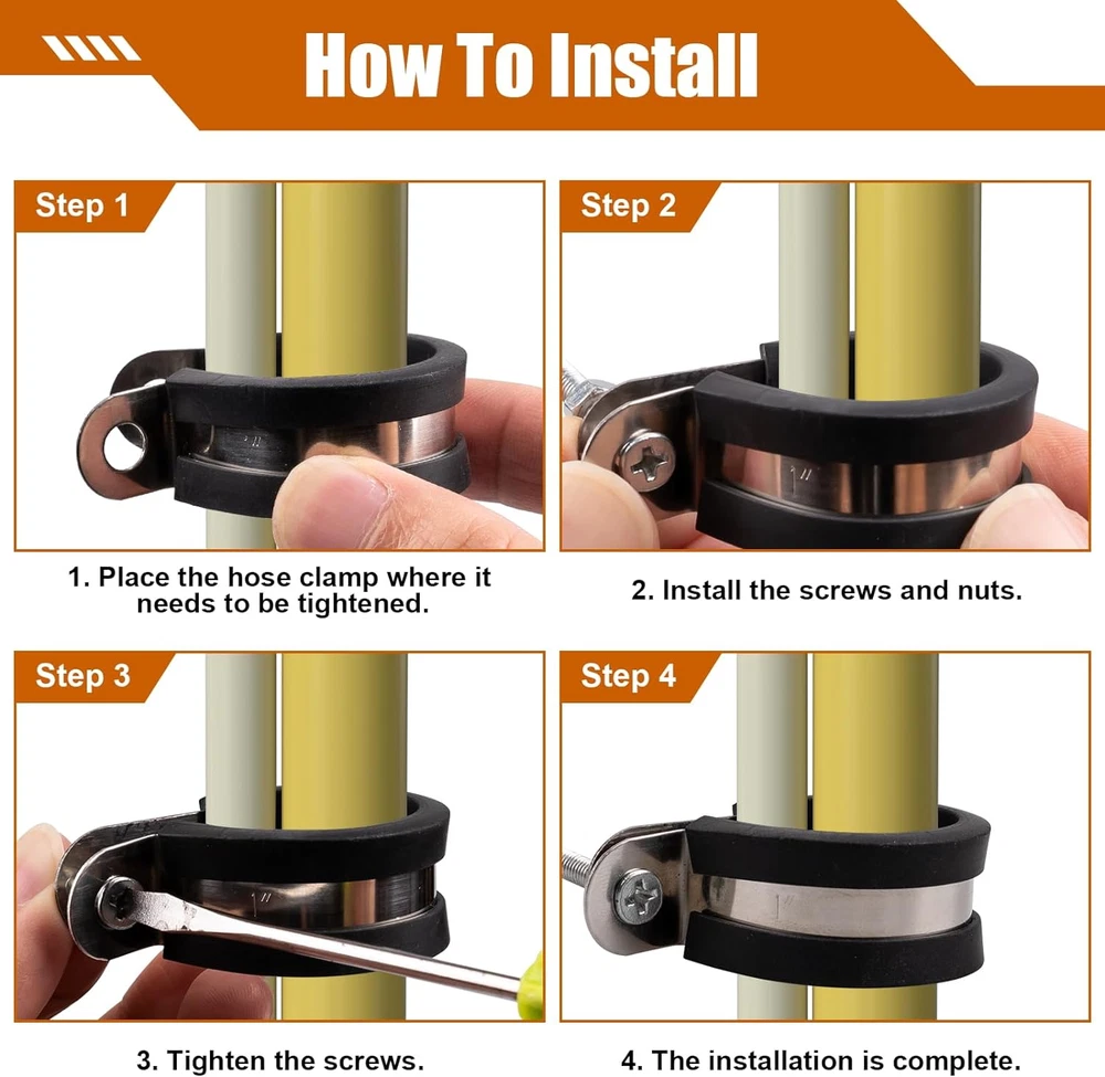 80 PCS Cable Clamps Assortment Kit: 7 different sizes for use in a variety of environments. Includes 1/4 inch (32 pieces), 5/16 inch (14 pieces), 3/8 inch (10 pieces), 1/2 inch (8 pieces), 5/8 inch (8 pieces), 3/4 inch (4 pieces), 1 inch (4 pieces). Premium 304 Stainless Steel: Metal cable clamp made of 304 premium stainless steel material and high quality rubber cushioned. Resistant to salt, rust, corrosion, water and oil. It has good flexibility, protects the tube well and keeps the clamp firmly in place. Easy Installation: The installation is easy, just find a correct stainless steel metal cable clamp, tighten it with M6 screws. Each insulated wire clamps cushion rubber coated pipe hose clamp size is printed on the surface so that it is easy to quickly find the right size. Wide Applications: The marine grade insulated wire clamps cushion rubber coated pipe hose clamp. Used in automotive, industry, boat, outdoor, garden, home decoration, RVs and any place where vibration may occur. Such as wires, pipes, line management and repair. KKEETUR Team Quality Commitment: The team is confident enough in the quality of the cable clamps assortment kit, if for any reason you are not satisfied with your purchase, please , we will give you a satisfactory answer within 24 hours, risk-free shopping. KEETUR 80PCS Cable Clamps Assortment Kit - 7 Sizes Product Name: Stainless steel metal cable clamp Material: 304 stainless steel and premium rubber cushioned Clamp Width: 0.75 inch 19mm Clamp Hole Diameter: 1/4 inch Quantity: 32 pieces X 1/4 inch 14 pieces X 5/16 inch 10 pieces X 3/8 inch 8 pieces X 1/2 inch 8 pieces X 5/8 inch 4 pieces X 3/4 inch 4 pieces X 1 inch Marine Grade 304 Stainless Steel Cable clamps assortment kit are made of 304 stainless steel, salt, rust, corrosion, water and oil resistant. It can keep working stably for a long time even in the harsh environment. Printed Size Markings Printed markings on each insulated wire clamps cushion rubber coated pipe hose clamp make it easy to quickly find the correct rubber clamp, saving you time searching around for a specific size. 19mm Wide Rubber Insulation Clamps The rubber is 19mm wide, which is wider and stronger than most insulated wire clamps cushion rubber coated pipe hose clamp on the market. It prevents damage caused by vibration-induced shocks and effectively protects lines and tubes. 80 Piece Multi-Size Cable Clamps This stainless steel metal cable clamp is made up of 7 sizes commonly used in everyday work and is perfect for plumbing repairs, providing a durable, low-maintenance solution. Satisfaction Guarantee Customer satisfaction is our team's top priority, if there is any problem in the shopping process, you can contact our team at any time, will give you a satisfactory answer within 24 hours, so that you can shop without worry.