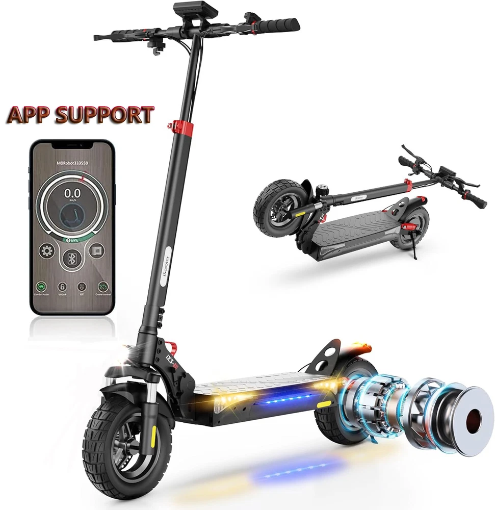 800W Electric Scooter Up to 25Miles Range Adjustable Handlebar Height Foldabable About this item 【High Cost-effective Electric Scooters】 iX3 Foldable electric scooter comes with a 48V/10h battery up to 20-25 miles cruising range. This E-scooter equipped with 800W powerful brushless motor providing for a convenient and comfortable riding. It is suitable for commuting to work, shopping in supermarkets, mountain cross-country and short traveling. 【10 Inch Off Road Pneumatic Tubeless Tires】 The iScooter iX3 comes with upgraded 10 Inch off-road pneumatic tubeless tires that are designed to handle many terrains from asphalt road to dirt roads. Combined with front and rear dual shock absorbents, electric scooter iX3 offers a excellent riding experience, especially for suburban commuting. You just need to pour in the tire repair fluid if your tire accidentally punctures. 【Made to Move - Comfortable Commuting】 Upgraded rated 800 Watt Motor provides provides high torque but maintains a low power consumption, which can reach 25MPH top speed and max 20-25° climbing slope. You can set up the top speed, custom riding mode and lock your E-Scooter through the APP 'MiniRobot'. 【Foldable & Adjustable Handlebar Height】 iX3 electric scooter adults weighs 51 lbs and can carry a maximum load of 264lbs. It is one-piece pre-installation, no need to install when you received. The handlebar height can be adjusted 44.5-52.8 Inch depends on your need. Just 3 steps you can fold it easily. Easy to carry it on public transportation or store it in your car to go wherever you want. 【iScooter - Buy with Confidence】 iScooter, a brand you can trust. We have always focused on the quality and technical improvement of electric scooters. Choose us, our E-scooter will become your favorite commuting or outdoor travel companion. iScooter offer 360-days or 180-days warranty for different parts, contact us to get fast and professional service. 【Warm Tips 】To provide you a good riding performance, please fully charge the electric scooter before the first ride. Specification: Safety Standards: UL2272 Certified Model: iScooter iX3 Electric Scooter Body: Aluminium alloy Motor: 800W Battery: 48V 10AH Lithium Battery Adapter: 100-240 V, Outgoing 54.6 V 1.5A Brakes: Disc brake + Electronic brake Tires: 10" Off-road Tires Lights: Front LED headlight, turn signals and taillight Max. loading: 265 lbs Max. speed: 10-25 mph Maximum range: 30-40KM Charging time: 6-7 H The package includes: 1 x iX3 Off Road Electric scooter 1 x 54.6V 1.5A Charger 1 x Tool Kit 1 x Manual Payment Delivery details Return Feedback Contact us Payment * We accept PayPal only * Please verify your address during checkout. We are not responsible for any wrong or undeliverable addresses. * If there is anything wrong with the checkout or you need us to combine the shipping, please kindly feel free to contact us. Delivery details 1. Items are generally shipped out the next business day after your payment has been cleared (Sat. Sun. excluded.) 2. The shipment usually takes 3-5 business days (Saturday and Sunday excluded), if you need the item urgently, please contact us for detail before purchase. * We Ship to Payment address ONLY. So please confirm shipping Address prior to your payment. We are not responsible for any wrong or undeliverable addresses. Return Products with quality problem in 30 days can be returned and refund /replaced (Item in resalable condition) Products with quality problem in 1 year can be returned and repaired. (For more details, please read our warranty policy). Feedback Contact us if you have any question, please give us a chance to serve you, negative feedback couldn’t solve anything, communication Please! Contact us Welcome back to our store! Customers satisfaction is our top priority.