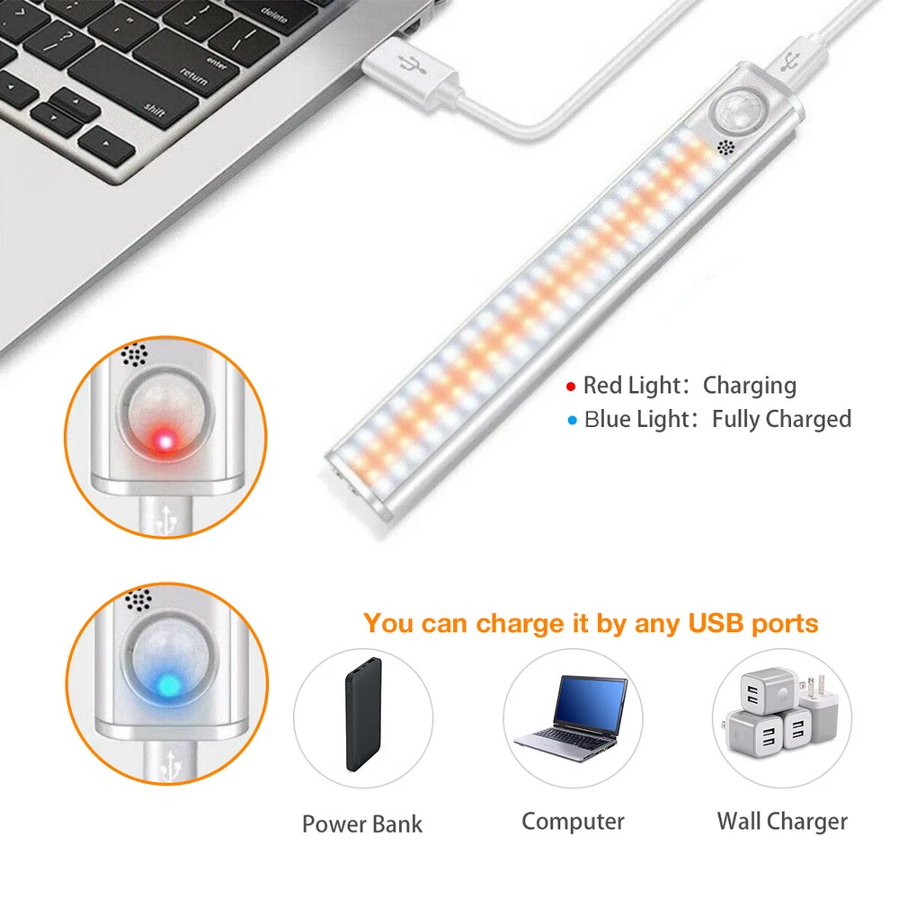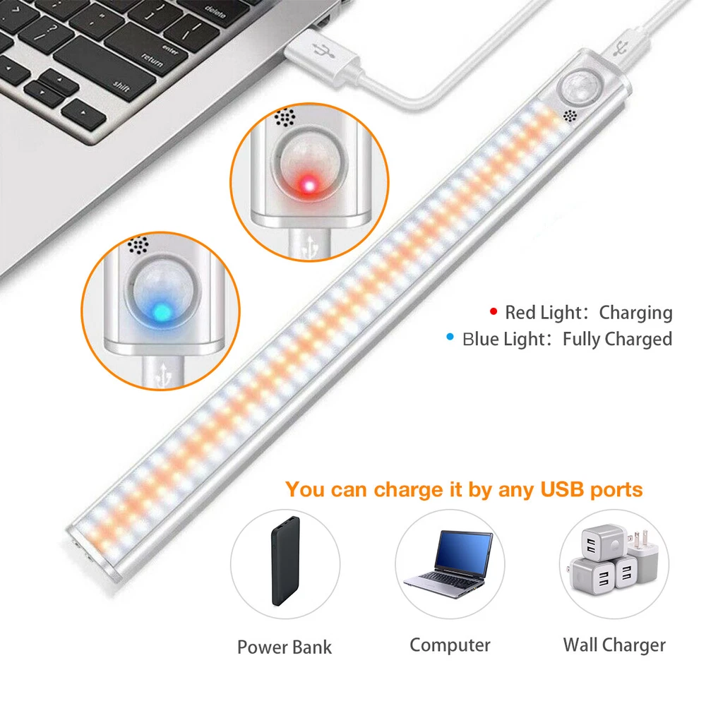 Features: 1.Much Brighter and Vision Friendly with 3 Color Modes: Whether you need more light in the kitchen, in the closet, over your workbench, or for your computer desk, under-cabinet lights are the way to go. 2.Our upgraded closet light with 80/120/160 LEDs, much brighter than other LED closet lights of similar size it can produce a Warm, Soft Glow or a Bright White Light without hurting your eyes either way. 3. 4 Cycle Modes: ① Always ON Mode: The light will be lighting for 5 hours if it is full charged. ② Motion Sensor Mode (Green light flash 1s): the led sensor cabinet light can detect movement up to a range of 26 ft at an angle of 120°, it shuts off after 20 seconds of when it doesn’t detect any. ③ Night sensing mode (red light flashes for 1s): Only when the light sensor detects d 80-160LED Motion Sensor Under Cabinet Closet Night Lamp Rechargeable Kitchen Features: 1.Much Brighter and Vision Friendly with 3 Color Modes: Whether you need more light in the kitchen, in the closet, over your workbench, or for your computer desk, under-cabinet lights are the way to go. 2.Our upgraded closet light with 80/120/160 LEDs, much brighter than other LED closet lights of similar size it can produce a Warm, Soft Glow or a Bright White Light without hurting your eyes either way. 3. 4 Cycle Modes: ① Always ON Mode: The light will be lighting for 5 hours if it is full charged. ② Motion Sensor Mode (Green light flash 1s): the led sensor cabinet light can detect movement up to a range of 26 ft at an angle of 120°, it shuts off after 20 seconds of when it doesn’t detect any. ③ Night sensing mode (red light flashes for 1s): Only when the light sensor detects darkness, the closet light will turn on or off. ④ Larger Battery Capacity and Rechargeable: Built-in 1800 mAh high-capacity rechargeable battery, has larger battery capacity than other led cabinet lighting, easily to charged via USB. 4.After fully charged, these closet lights last 2-3 months under motion sensor mode. 5.Stick-on Anywhere, 2 Ways Easy to Install: 1. Built-in magnet, the under cupboard lights can be attached directly to a iron article surface; 2. With magnetic stripany,stick on any Non-Iron Article Surface. 6.You Can Take it off Anytime If You Need Charge or Change Place. 7.Adjustable Brightness: Press the S1 key to adjust the brightness from 0.1% to 100%. 8.Perfect for the bedroom, bathroom, cupboard, closet, stairway, drawer, under-cabinet, pantry, wardrobe, workshop, bookshelf, attic, closet, shoe cabinet, basement, hallway, corridor, headboard,garage, stairwell, oil depots, door, garage entrances and other places. How to use: How To Change Color /Brightness Light? White color: Single press the switch S1, the light will change color and become white Warm color: Single press the switch S1,the light will change color and become warm Mix color : Single press the switch S1,the light will change color and become mix Brightness: Single press the switch long , you will see the color of the light change,Choose the brightness you want. Package included: 1 x LED Motion Sensor Closet Light 1 x USB Cable 1 x Magnet Sticker 1 x User Manual Payment Delivery details Terms of sales About us Contact us Payment • We only accept payment through paypal currently! Delivery details • All items from Brolawn will be shipped through USPS! • If buyer ordered the wrong part or wouldn't want it anymore, we would charge 15% restocking fee. • We currently don't support international shipping! • Orders on weekends will be shipped on next Monday! Terms of sales • Customer's satifaction comes in the first place to us! • Please don't leave any negative or neutral feedback without communication. We are always here to help! • We sincerely invite you to leave positive feedback for us if you are satisfied with our product and service. • Thank you for shopping with us! About us • We are experienced aftermarket autoparts supplier! • We are professional ebay seller! • If you are not sure which part to buy, please feel free to contact us through ebay messages. Contact us • Please contact us via ebay message. • All messages will be answered within 24 hours!