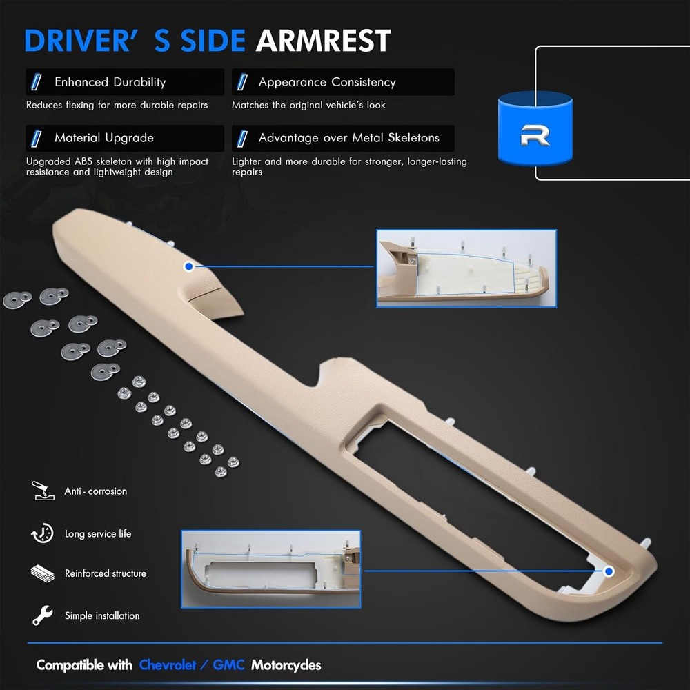 Item specifics Condition:New Placement on Vehicle: Front Left Part Type: Door Armrest Color: Tan Material: Polymer, Metal Part Number:80995 Manufacturer Part Number:20920362; 20954878; 20954886; 20954899 OEM Part Number:22818475; 22818483; 22818496; 84127277 Interchange Number:84127280, 84127285 Saves expense, Partial repair, no need to Replace the Door Trim Panel Assembly upgraded metal skeleton designed to minimize flexing under pressure for a longer lasting repair than the OE plastic design Repair kit works for door panels with the handle above the armrest. Repair kit won't work for door panels with the handle below the armrest. Repairable Door Trim Panel Assembly Number 20920362, 20954878, 20954886, 20954899, 22818475, 22818483, 22818496, 84127277, 84127280, 84127285 80995 Door Armrest Repair For Chevrolet Silverado GMC Sierra Front Left US Stock Item specifics Condition:New Placement on Vehicle: Front Left Part Type: Door Armrest Color: Tan Material: Polymer, Metal Part Number:80995 Manufacturer Part Number:20920362; 20954878; 20954886; 20954899 OEM Part Number:22818475; 22818483; 22818496; 84127277 Interchange Number:84127280, 84127285 Saves expense, Partial repair, no need to Replace the Door Trim Panel Assembly upgraded metal skeleton designed to minimize flexing under pressure for a longer lasting repair than the OE plastic design Repair kit works for door panels with the handle above the armrest. Repair kit won't work for door panels with the handle below the armrest. Repairable Door Trim Panel Assembly Number 20920362, 20954878, 20954886, 20954899, 22818475, 22818483, 22818496, 84127277, 84127280, 84127285 Fitment: Chevrolet Avalanche 2010-2013 Chevrolet Silverado 1500 2010-2013 Chevrolet Silverado 2500 HD 2010-2014 Chevrolet Silverado 2500 2010-2014 Chevrolet Silverado 3500 HD 2010-2014 Chevrolet Suburban 2014 Chevrolet Suburban 1500 2010-2014 Chevrolet Suburban 2500 2010-2013 Chevrolet Tahoe 2010-2014 GMC Sierra 1500 2010-2013 GMC Sierra 2500 HD 2010-2014 GMC Sierra 3500 HD 2010-2014 GMC Sierra: 2010-2013 GMC Yukon 2010-2014 GMC Yukon XL 1500 2010-2014 GMC Yukon XL 2500 2010-2013 Note: Armrest Repair Kit fits for door panels with the handle above the armrest, won't fit for door panels with the hanle below the armrest. Payment Delivery details Terms of sales About us Contact us Payment Some of your addresses are not in our service area , we will contact you for a cancellation . 1.Please fill in a valid contact address. 2.We Accept variety of payment methods such as credit, debit, and gift cards, Apple Pay, Google Pay, PayPal, and PayPal Credit. P ayment must be cleared within 1 business days after you placed the order . Special request cannot be accepted after 24 hours of payment, because most of orders will be processed and dispatched in same day. Delivery details If your address is other remote areas , you may need to pay additional remote fees . Terms of sales 1.We offer hassle-free returns and exchanges on all our products. Ret urn is a ccepted within 30 days after the buyer’s receiving the item . If you need return,let us know the detailed problem and send us some pictures for confirmation.Then get a address for return or refund .But we don't accept artificial damage of the items.Manufacturer's limited Warranty for defective items. About us We strive to ensure that our products are reliable, updated and that our transactions are smooth and speedy. We are positioned to bring you the latest consumer automotive aftermarket parts and accessories globally and round the clock. Contact us Please email us to resolve any problem before you leave any feedback to us. We will reply you via email ASAP, if no response for you within 48 hours, please check the spam / junk folder in your mail box. Brand Unbranded Type Door Panel Color Beige Manufacturer Part Number 80995 Features Durable, Easy Installation Placement on Vehicle Front Left Material Polymer OE/OEM Part Number 80995, 20954880 Manufacturer Warranty 2 Years