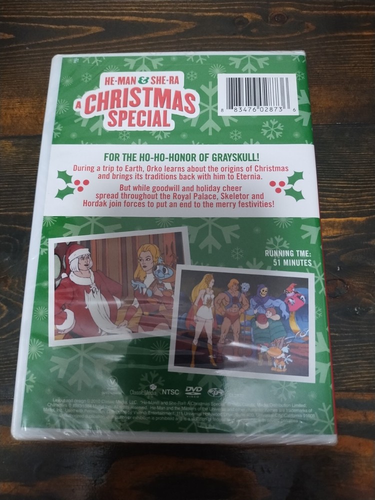 Studio: Filmation Case Type: Tall/DVD Case Rating: NR Genre: TV Shows, Children's & Family, Family, Animation, Action, Action-Super Hero, Adventure, Animation-Children's & Family, Animation-Super Hero, Cult, Family-Animated, Family-Fantasy, Fantasy, Futuristic, Holiday-Christmas (Animated), Sci-Fi & Fantasy, TV Action & Adventure, TV Animation, TV Family, TV Sci-Fi, Xmas Video Language: English Sub-Genre: Animation/Anime, Christmas, Family, Androids, Caper, Escape, Magic, Melodrama, Robots/Cyborgs, Screwball, Slapstick, Superhero, Supernatural Format: DVD Run Time: 51 Mins Edition: Special Edition Type: Movie Cinematic Movement: Cult, B-Movie Release Year: 2005 Franchise: Masters of the Universe Movie/TV Title: He-Man and She-Ra-A Christmas Special