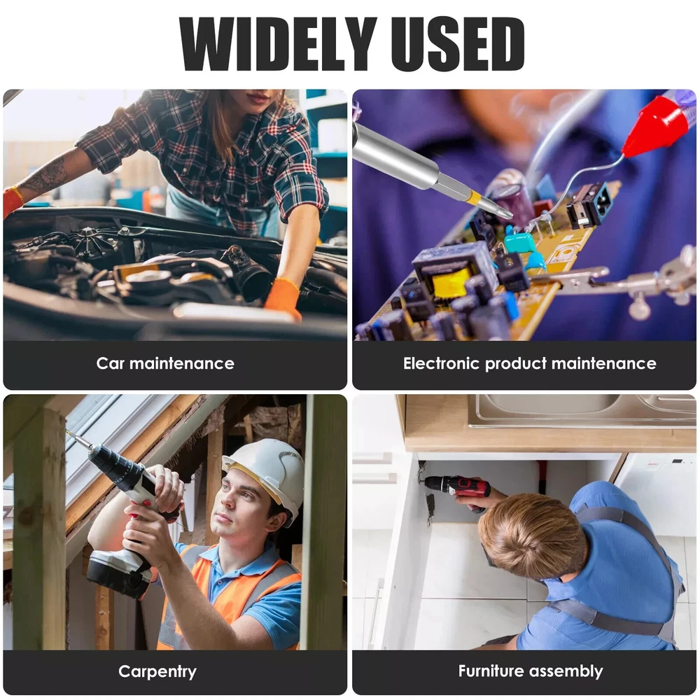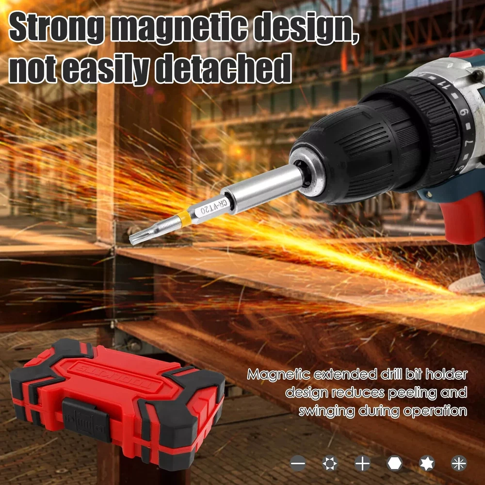 About this item SET INCLUDES: Screw Guide, Socket Adaptors, and Nut Drivers. Widely USED:Home and DIY use - Ideal for hanging pictures, installing fixtures, assembling furniture and other tasks around the house. STORAGE:Modular case for easy removal and storage of bits. Applicability:Impact rated bits with hex shank for Impact Drivers and Drills.Universal, for the most drills and impact drivers of brands in the markets BIT HOLDER: bit holder holds drill bits for driving fasteners without a tool.