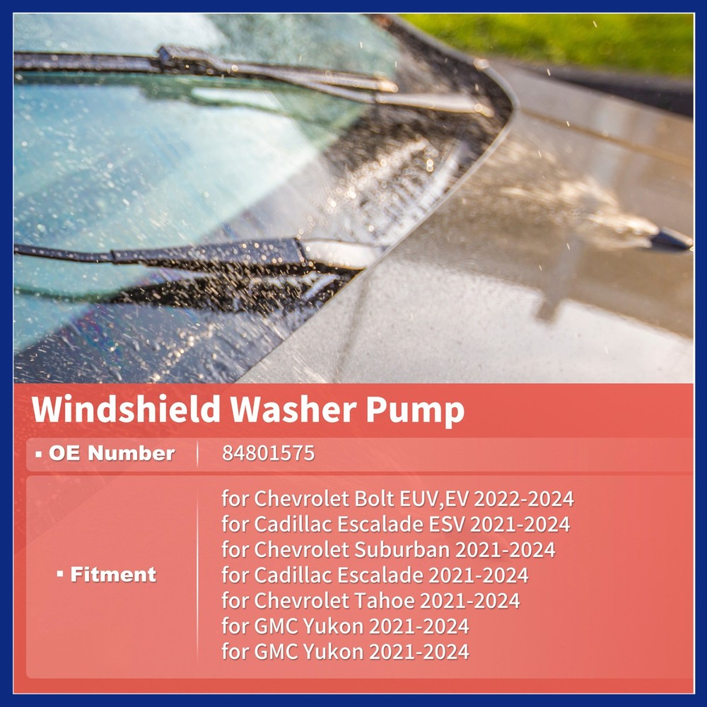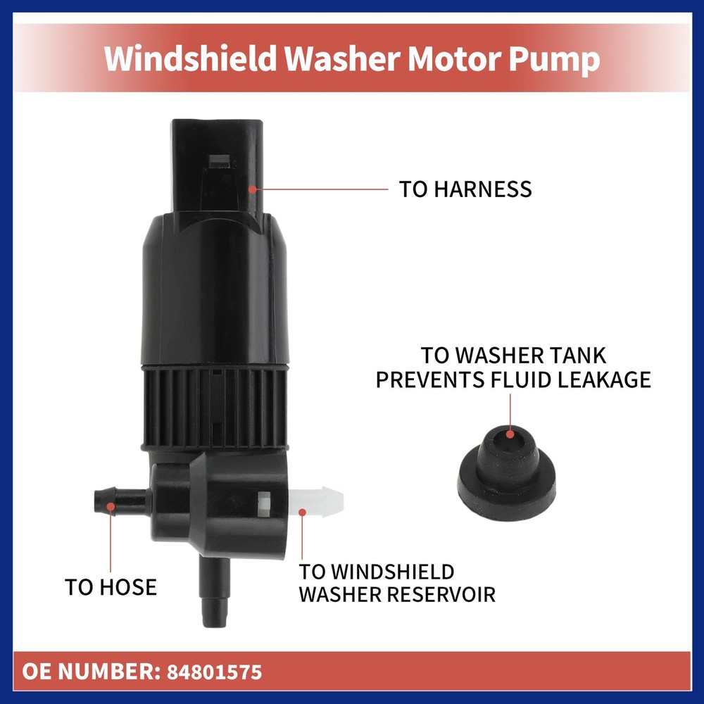 Document Features:Washer Fluid Pump can quickly and effectively wash away the dirt on the windshield. Provide a clear driving view.When Need To Replace Washer Pump: If your windshield washers don't spray or uneven spraying, washer fluid reservoir leaks, the weakening of the water pressure and so on, you may need to replace the windshield washer fluid pump and grommet.The windshield cleaning fluid pump is made of plastic material. Durable, can provide you stable and efficient water spraying effectt and with a rubber grommet, have good sealing, which can prevent leaks of cleaning fluid.This is non-OEM product, accessory ONLY!OE Number:84801575Specification:Color: BlackMaterial: PlasticPin Number: 2 PinsType: Washer PumpFit for:for Chevrolet Bolt EUV,EV 2022-2024for Cadillac Escalade ESV 2021-2024for Chevrolet Suburban 2021-2024for Cadillac Escalade 2021-2024for Chevrolet Tahoe 2021-2024for GMC Yukon 2021-2024for GMC Yukon 2021-2024Installation:1. Take the wheel off2. Unplug the old washing pump3. Replace the rubber gasket4. Insert the new washing pump into the storage tank with the same hosesPackage Includes:1 Pc Windshield Washer Pump with Grommet 84801575 Windshield Washer Pump for Cadillac for Chevy for GMC 21-24 Features: Washer Fluid Pump can quickly and effectively wash away the dirt on the windshield. Provide a clear driving view. When Need To Replace Washer Pump: If your windshield washers don't spray or uneven spraying, washer fluid reservoir leaks, the weakening of the water pressure and so on, you may need to replace the windshield washer fluid pump and grommet. The windshield cleaning fluid pump is made of plastic material. Durable, can provide you stable and efficient water spraying effectt and with a rubber grommet, have good sealing, which can prevent leaks of cleaning fluid. This is non-OEM product, accessory ONLY! OE Number: 84801575 Specification: Color: Black Material: Plastic Pin Number: 2 Pins Type: Washer Pump Fit for: for Chevrolet Bolt EUV,EV 2022-2024 for Cadillac Escalade ESV 2021-2024 for Chevrolet Suburban 2021-2024 for Cadillac Escalade 2021-2024 for Chevrolet Tahoe 2021-2024 for GMC Yukon 2021-2024 for GMC Yukon 2021-2024 Installation: 1. Take the wheel off 2. Unplug the old washing pump 3. Replace the rubber gasket 4. Insert the new washing pump into the storage tank with the same hoses Package Includes: 1 Pc Windshield Washer Pump with Grommet ITEM SPECIFICS Brand switchpart Type Washer Pump Placement on Vehicle front Manufacturer Part Number 84801575 OE/OEM Part Number 84801575 Material Plastic Universal Fitment No Items Included Washer Pump Attachment Type Insert Manufacturer Warranty none Interchange Part Number 84801575 Superseded Part Number 84801575 Product Name Washer Pump Net Weight 147g Shell Color Black Other Part Number 84801575 Dimension 3.9"x3.4"x2.6" Package Content 1 Pc Windshield Washer Pump with Grommet Note This is not oem product,accessory only. NOTICE If you have any questions, please feel free to contact our customer service. Our response will be faster than eBay! Our Handling Time: within 24 hours on weekdays eBay Handling Time: 72 hours ABOUT US SHIPPING POLICY PAYMENT RETURN CONTACT US We are committed to providing professional, safe and effective personal care products. We strive to provide customers loved products at the competitive price. We work with suppliers to discover practical, easy-to-use personal care products. Our store not only offers quality products at the competitive price, but also has professional customer service, offers you comfortable shopping experience. Please don't forget to follow us on eBay. We will continue to update and provide more and more practical personal care products. switchpart thank you for your business! We work hard to safely and securely ship your order in the least amount of time. Storewide free shipping in United States. All our items will be shipped to buyer's address, please confirm your address on eBay before you purchase. Taxes and other charges are included in the item price or shipping charges. Buyers are responsible for these charges. We accept payment methods show in payment details. Payment must be received within 7 days of auction closing. According to eBay guidelines, all unpaid purchases case will be opened automatically. If you need to specify the color or other information for the items you purchased, please Click here to contact us directly with item # and your eBay ID. We offer a 30 day return policy. This is under the following conditions: The item must be unused and in a resalable condition otherwise are not eligible for a refund. All items returned by post are returned at your expense, we cannot be held responsible for this. Please use a traceable service. Generally we answer emails within 24 hours (excluding weekends & holidays). Questions or comments? We welcome your inquiry! Please feel free to contact us directly. Description Policy 84801575 Windshield Washer Pump for Cadillac for Chevy for GMC 21-24 Features: Washer Fluid Pump can quickly and effectively wash away the dirt on the windshield. Provide a clear driving view. When Need To Replace Washer Pump: If your windshield washers don't spray or uneven spraying, washer fluid reservoir leaks, the weakening of the water pressure and so on, you may need to replace the windshield washer fluid pump and grommet. The windshield cleaning fluid pump is made of plastic material. Durable, can provide you stable and efficient water spraying effectt and with a rubber grommet, have good sealing, which can prevent leaks of cleaning fluid. This is non-OEM product, accessory ONLY! OE Number: 84801575 Specification: Color: Black Material: Plastic Pin Number: 2 Pins Type: Washer Pump Fit for: for Chevrolet Bolt EUV,EV 2022-2024 for Cadillac Escalade ESV 2021-2024 for Chevrolet Suburban 2021-2024 for Cadillac Escalade 2021-2024 for Chevrolet Tahoe 2021-2024 for GMC Yukon 2021-2024 for GMC Yukon 2021-2024 Installation: 1. Take the wheel off