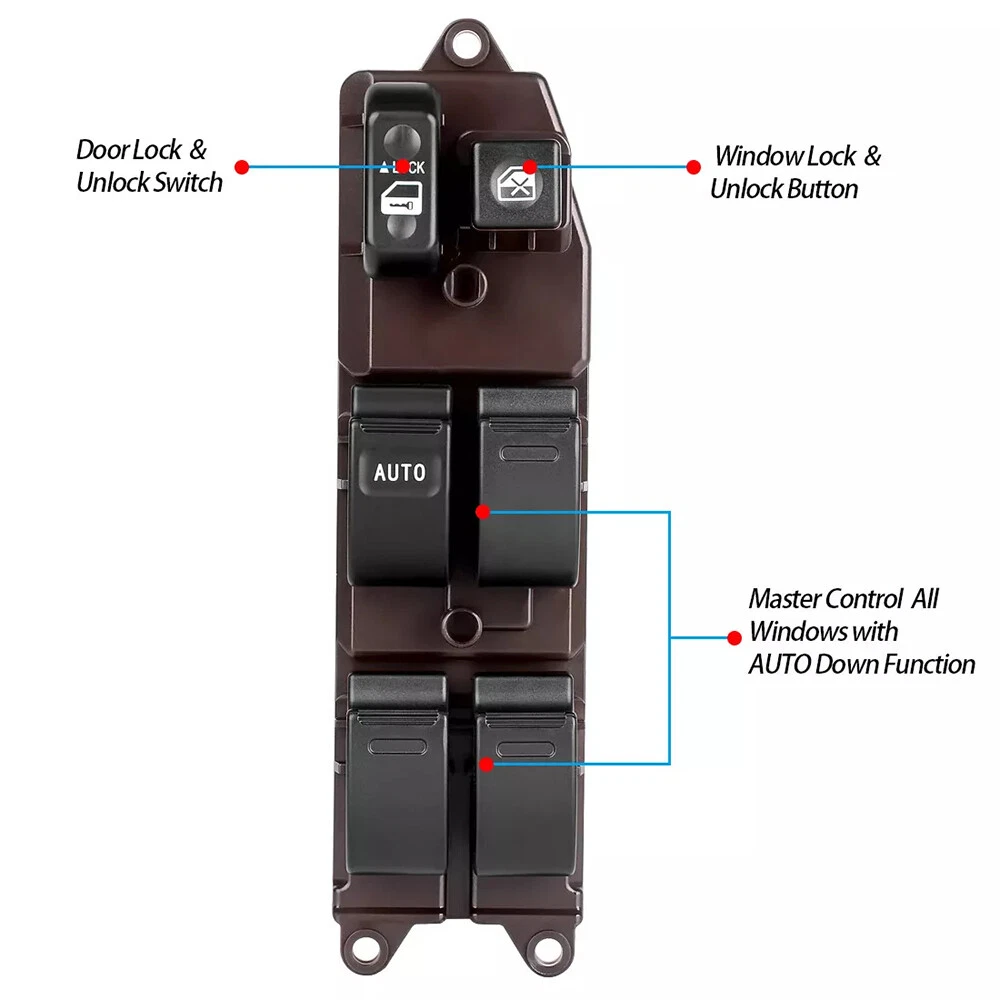 84820-12491 Electric Power Window Master Control Switch For 2003-2008 Toyota Corolla Matrix ☛ Item Specification: Condition: 100% Brand New and High Quality Power Master Window Switch Location: Front, Left (Driver) side Pin quantity: 14pin AUTO: 1(driver side) *Better stability with longer service life. *This power window switch fits, functions and matches the appearance of the original one for a perfect replacement. * Direct replacement without other tools. * It has undergone simulation and endurance testing to ensure proper fit and performance. ☛ Replace Part Number: 84820-12491, 8482012491, 84820 12491 ☛ Compatible Models: 2003-2008 Toyota Corolla 1.8L 2003-2008 Toyota Matrix 1.8L ☛ Package Including: 1x Power Master Window Switch ☛ NOTE: Please check the part number which print on the side of your old switch. If the OE number doesn't the same, please don't buy because the remote key couldn't be programmed even though the model and year are the same. In order to save your time and money, please check it before you bid.