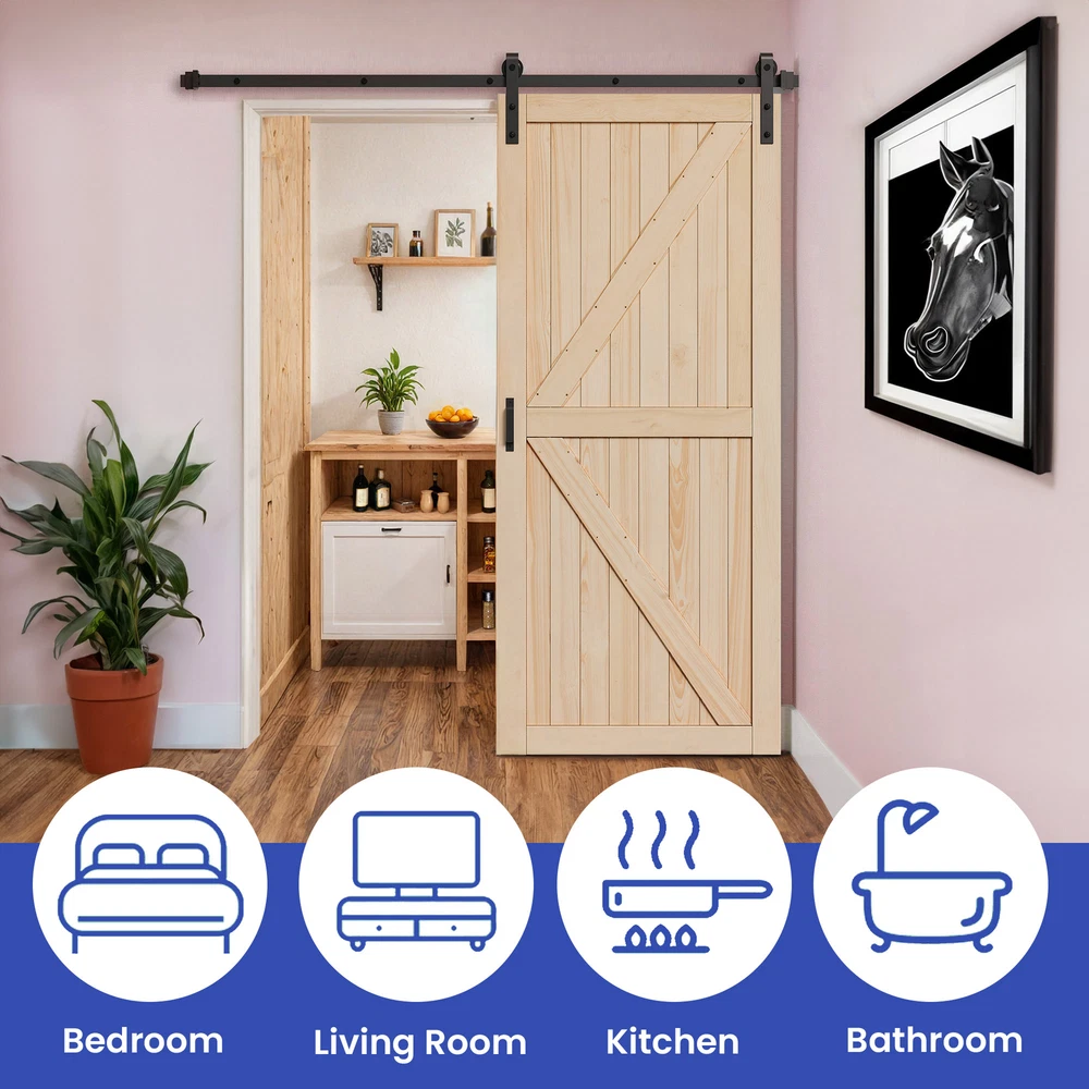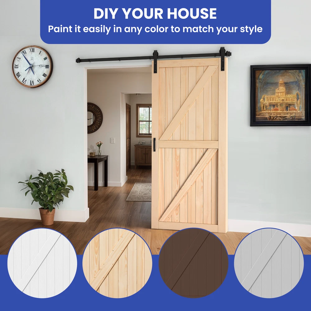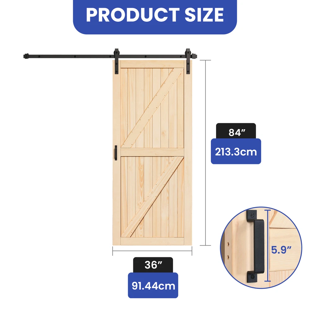 84 x 36" DIY Barn Door Natural Wood Unfinished Panel Sliding Double Surface With Metal Handle Product Description NOTE: Professional Installation would be Highly Recommended. Description: 1. Color: Natural 2. Material: Wood 3. Product Type: Barn Doors 4. Room: Bedroom, Living Room, Kitchen, Bathroom 5. Special Features: DIY, K-Frame Design, Sliding Doors, Wide Application, Easy Installation, Sturdy Construction Features: Durable Solid Wood & Natural Elegance: Crafted from 100% spruce, this barn door combines timeless beauty with exceptional strength. Resistant to bending and corrosion, it provides enhanced sound insulation and privacy, ensuring long-lasting durability for any space. Unlimited Custo mization: Craft your ideal barn door with unfinished natural spruce, ready to be stained or painted to suit your style. Personalize it to seamlessly complement any décor, creating the perfect fit for your space! Unmatched Stability with K-Frame Design: Experience enhanced stability with the robust K-shaped frame, designed for long-lasting support. Pre-drilled panels make assembly a breeze, ensuring a quick and easy setup. (Hardware kit sold separately.) Customizable to Match Your Style: With its highly customizable features, this barn door can be tailored to complement a wide range of decor styles. Whether you prefer a rustic farmhouse vibe, sleek modern minimalism, or a transitional blend of both, it integrates seamlessly, elevating the overall aesthetic of your space. Quick & Easy Installation: Set up your barn door in no time with our clear, step-by-step instructions, ensuring a hassle-free installation that saves you time and effort! Dimensions: 1. Product Dimensions: 36"W x 84"H 2. Door Handle Dimensions: 5.9"H 3. Item Weight: 42.9 lb Package Included: 1 x Barn Door Only 1 x Instruction Manual Book (SLIDE RAIL NOT INCLUDED) Shipping 1. Normally the item will be dipatched within 1 business day if payment is cleared before 12pm PST. 2. Please verify the correct shipping address in your PayPal account before making the payment. We only dispatch the item to the address that is sent to us at the time of checkout. 3. We don't ship to Hawaii, Alaska, Puerto Rico, APO/FPO/PO Boxes. 4. We don't provide local pick-up service. 5. Normally we will use USPS, UPS, FedEx & LTL to dispatch items. Payment 1. We accept PayPal and credit card. 2. We will ship to the confirmed Paypal shipping address that is provided with the payment only. Return 1. 30 days Money Back Guarantee. 2. Please contact our customer service to receive a RMA form first if want to return the item. 3. All returned items MUST in new condition with the original package. Contact If has any problem, please contact us by sending an ebay message. Our customer service will resolve the problem as soon as possible. On Sep 24, 2024 at 13:18:17 PDT, seller added the following information:
