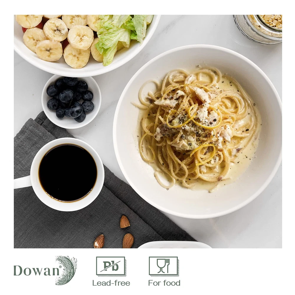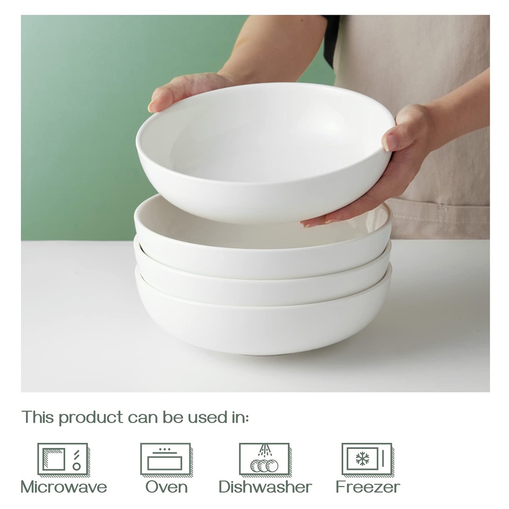 Home8.5-Inch Deep Pasta and Salad Bowls - Set of 4 White Elegant Porcelain 47oz