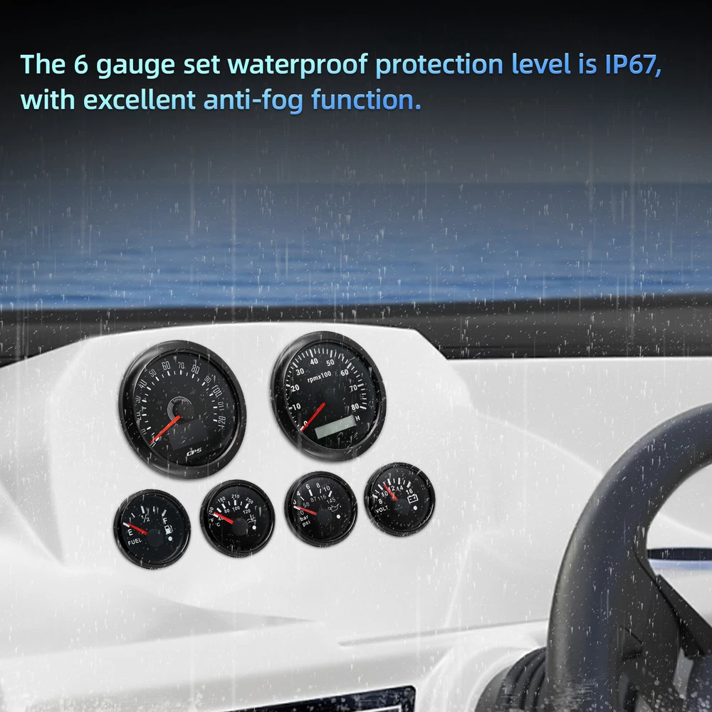 6 Gauge GPS Speedometer Kit Waterproof Universal for Car Truck Boat Marine