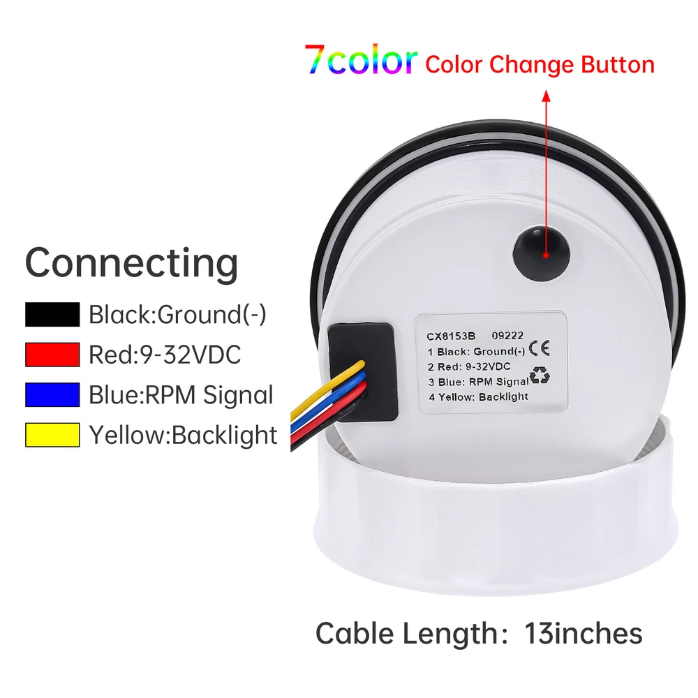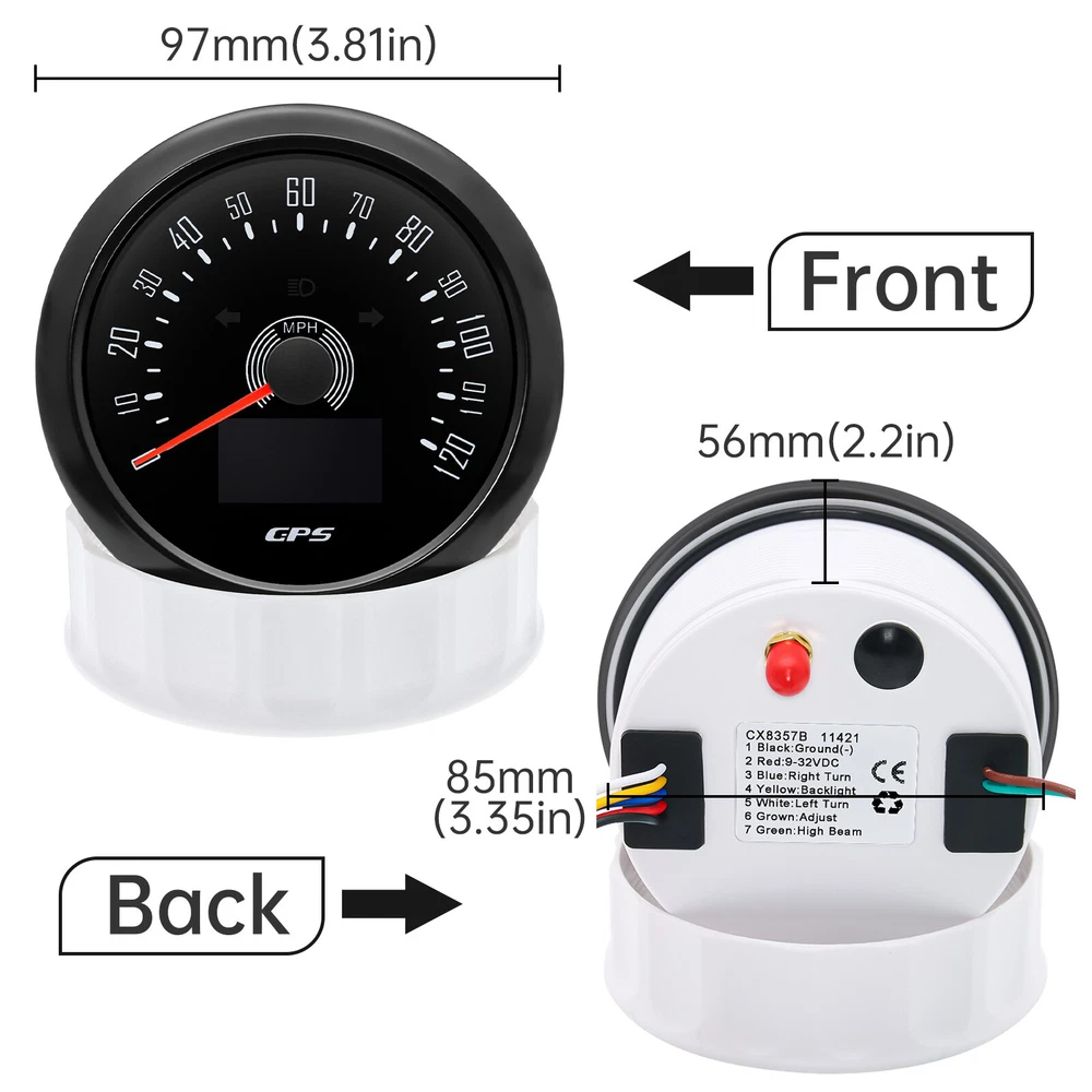 85MM GPS Speedometer 0-120MPH Tacho 0-8000RPM & 52mm Fuel/Oil Pressure/Temp/Volt 6 Gauge Set 8 5MM GPS Speedometer 0-120MPH Tacho 8000RPM& 52mm Fuel/Oil Pressure/Temp/Volt Feature: High-brightness LED backlight. 316 stainless steel for long-term use even in acid-base,humid environment. IP67 waterproof and dust-proof grade. With curved glass( with anti-fog function). Suitable for all kinds of vehicle modification. Using stepper motor drive pointer, accurate display of the engine speed, and with the LCD display clear display mileage. Gauges have many kinds backlight color (red,yellow,orange,green,blue,purple,white),customers can adjust any color that you like. Product Detail GPS Speedometer: GPS Speedometer: 120MPH Total mileage: (can't be adjusted ) TRIP:Short mileage(can be adjusted ) 1. Save when power off 2. Long press the button to reset COG: Course Over Ground Backlight: 7 Colors Backlight OLED LCD screen: working temperature -40℃~+80℃ Tac hometer High Precision Size:85mm Signal :Pulse Working voltage:9-32VDC Working current:<120mA Backlight:7 Color backlight Engine hours:0.0-99999.9H Working temperature:-30-70℃ Storage temperature:-40-85℃ Indicating Range:0-8000RPM Waterproof and dustproof grade IP67. Functions:current tacho/RPM and hour Operation mode: LCD display, stepper motor Tachometer fit for Car/Truck/ Boat /Diesel Generator Engine/Gasoline Engine Fuel Level Gauge Sizes:52 mm (2-1/16") Measuring Range:Empty-Full Resistance:240 (E)-33 (F) ohms Backlight:7 Colors Water Temperature Gauge Install diameter:Φ52mm Indication range:0~120℃/30-250℉ Input signal: 287.4~22.4ohms Storage temperature:-40~+85℃ Backlight:7 Colors Oil Pressure Gauge Install diameter:Φ52mm or 2-1/16" Indication range:0~10bar/0-150 PSI Input signal: 10-184ohms Operating temperature:-30~+75℃ Storage temperature:-40~+85℃ Backlight: 7 Colors Volt Gauge Sizes:52 mm (2-1/16") Measuring Range: 8-16 (V) Backlight: 7 Colors Trim gauge 7 Color Backlight : Red (default)→green → blue → white →yellow→cyan →Purple →(automatic). Fixing dimension: 52mm(2'') Indicating Range: UP-DN Signal: 0-190ohms Working Voltage: 9-32V(12V/24V) Operation mode: LCD display, stepper motor Package Includes: 1X 85MM Digital GPS Speedometer Gauge 1X GPS Antenna 1X 85MM Tachometer 1X 52MM Fuel level gauge 1X 52MM Voltmeter 1X 52MM Water temp gauge 1X 52MM Oil pressure gauge 1X 52MM Trim Gauge 7X Installation Instruction