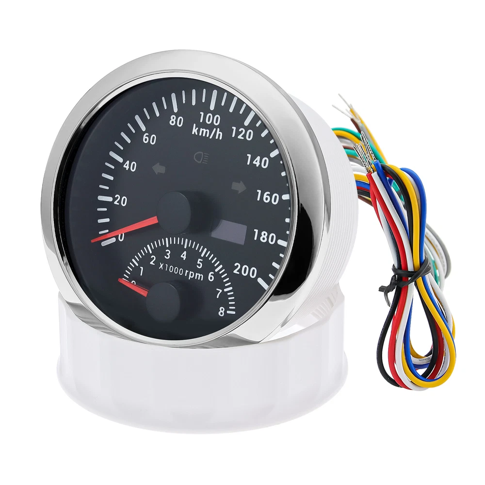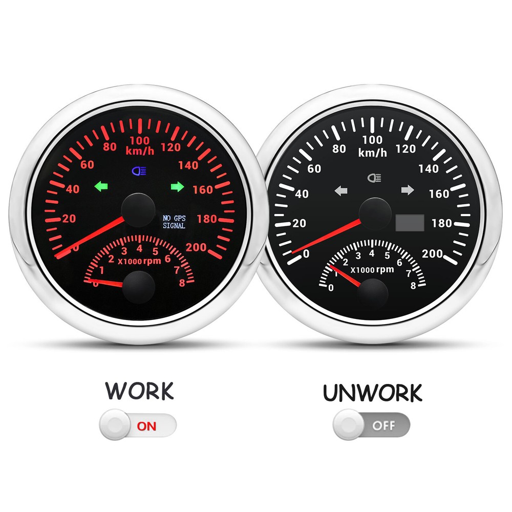 85MM GPS Speedometer 0-200 Km/H with Tachometer Gauge 8000RPM for Car Boat Truck 85MM GPS Speedometer 0-200Km/H with Tachometer Gauge 0-8000RPM for Car Boat Motorcycle Warmly tips: If any problem after buying, such as some when you install or the parcel received or un-received, please do not open a case and do not hesitate to contact us. We would do our best to give you the best solution. Thank you so much Features: - Suitable for all vehicles and off-road vehicles - The signal comes directly from the satellite signal receiver(GPS Antenna), don’t need other speed sensor. - The gauge has the advantages of high precision, quick location confirmation and short start up time. - IP67 waterproof and dustproof grade - Reverse polarity protection and anti-fogging performance - No Stationery Drift - Stepper motors used for full range of stepping gauges, great feature with its less power consumption, longer life, higher precision, etc. Technical Data: * Fixing dimension: 85mm(3-3/8") * Indicating Range: 0-200km/h,and 0-8000rpm * Working Voltage: 12V/24V * Total Mileage Adjustable, Mileage Range: 0-99999.9 km * GPS Blind Area Odometer Compensation * OverSpeed Buzzer Alarm (Value Adjustable) * Indication light: LEFT, HIGH BEAM, RIGHT * Backlight: Red * Working temperatures: - 40 to 85°C * Operation mode: LCD display, stepper motor Connection: 1. Black: Ground(-) 2. Red: 9-32VDC(+) 3. Blue: RPM Signal 4. Yellow: Backlight(+) 5. White: High Beam(+) 6. Brown: Buzzer alarm(+) 7. Green: Buzzer alarm(-) 8. Yellow: Left Turn 9. Gray: Right Turn 10. White: Ex. Button(no need connect)==(If need to connect, please connect negative) Package Included(as picture): 1x GPS speedometer with tachometer 1x GPS Antenna 1x Multi-plug socket 1x Installation Instruction Wholesale and Drop shipping - For wholesale, we will offer the discount or free express shipping which only takes 3-7 days to arrive. - For drop shipping, We could send the goods to your customers directly and won't leave information about us if youd like to.