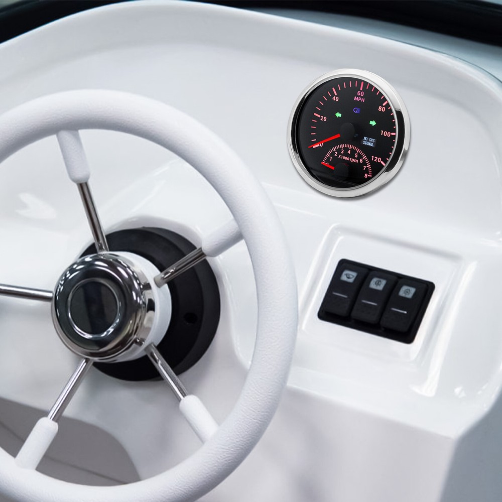 85mm 3-Gauge Set GPS Speedometer 120MPH Tachometer 4-in-1 Fuel Gauge for Boats and Cars