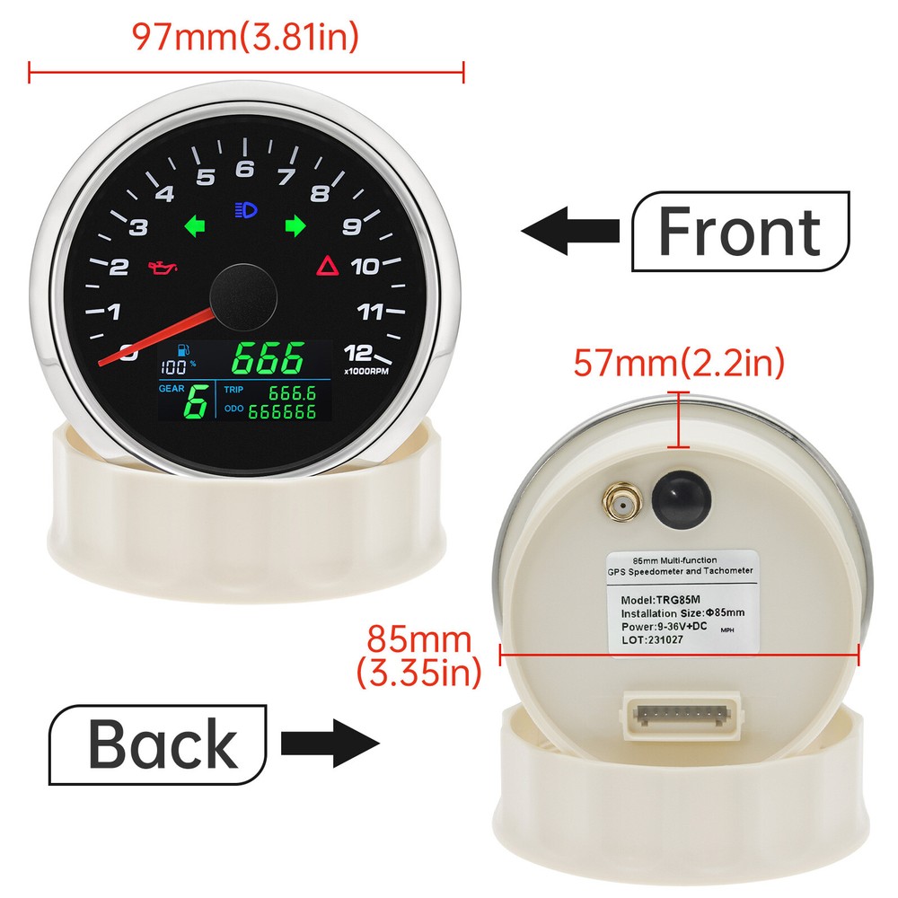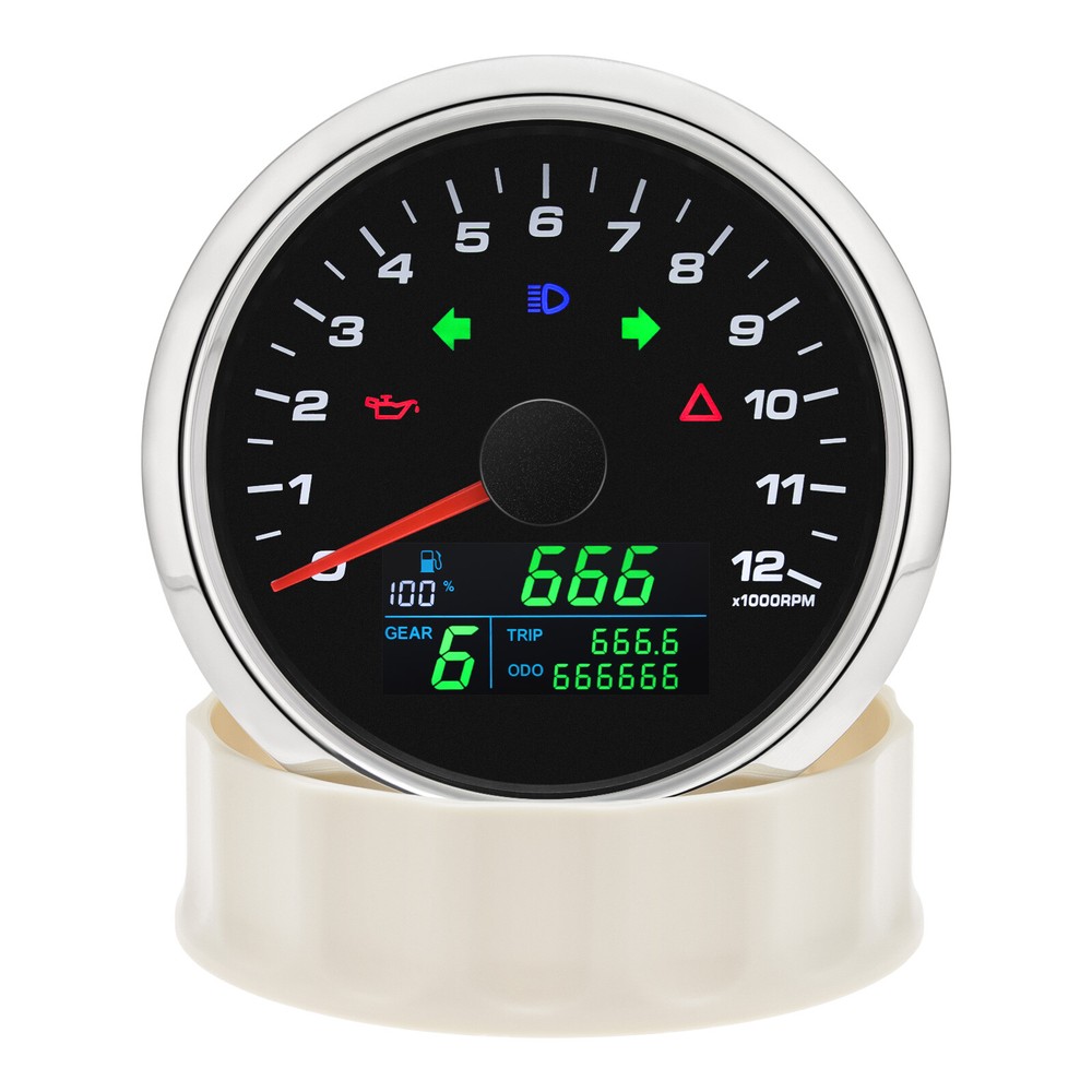 85mm Multi-functional Gauge 12000RPM Tachometer GPS Speedometer Fuel Level Volt 85mm 3in 1 Multi-functional Gauge 12000RPM Tachometer GPS Speedometer Fuel Level Volt For Car Install the Gauge a.Place the motorcycle on a level and secure area. Disconnect the battery. b.Refer to the appropriate factory service manual and remove the OEM speedometer. c.Mount the new speedometer in the desired location. d.Locate and route the orange, green and either one of the black wires exiting from the center of the rear of the gauge to the existing OEM speedometer sensor wiring. You may extend or shorten the gauge wires as needed for your application. e.Securely fasten the GPS antenna, preferably outdoors (or inside front windscreen) so that it has a clear view of the sky to pick up satellite signals. Connect the antenna cable to socket on the gauge. Do not cut cable. f.After turning power on, allow the gauge to sample satellite signal for 1 minute. g.All data is for reference only and should not be trusted as sole navigation source. Parameter Menu:PULSE, Unit, odo, oil Press and hold the back button, then power on. The LCD will keep switching & showing "PULSE, Unit, odo, oiL" every 1 second. Choose the target menu, release button to enter setting. 1."PULSE": Set the engine speed RPM Ratio, unit: pulse/rpm, range: 0.5-655.3 How to confirm RPM Ratio? a.If your sensor is installed on the flying wheel panel, the RPM ratio is equal to the number of gears of the engine. b.If the speed signal takes from W-Terminal of Alternator, the RPM ratio is equal to the half of the number of poles. Normal RPM Ratio for Reference: c.If you cannot find W-terminal of Alternator, you will need order separately our GR01 RPM sensor adapter to get RPM signal, which just need cross around the ignition coil cable. 2." odo"(Set Total Odometer) After selecting "odo", the LCD will show for example "5000" (5000 km) , press the button to set the flashing digit from 0 to 999999 to set the target odometer value. 3." Unit"(Set Unit: km/h, mph) LCD will switch show km/h, mph .Then release button, and wait for menu to complete flashing. 4."oiL"(Set Fuel Gauge Signal) LCD will show"o00002"(ohm range 10~180Ω). Press button to set target ohm range depends on Table A Release button and wait for menu to complete flashing. Table A 5. Odometer & Trip Odometer Power on the speedometer, and long Press to reset the Trip Odometer to Zero. Please noted: After setting, you should disconnect both Power+ and GND, and then re-power on, then it will save the setting. If you just cut Power +, then it'll not work properly.