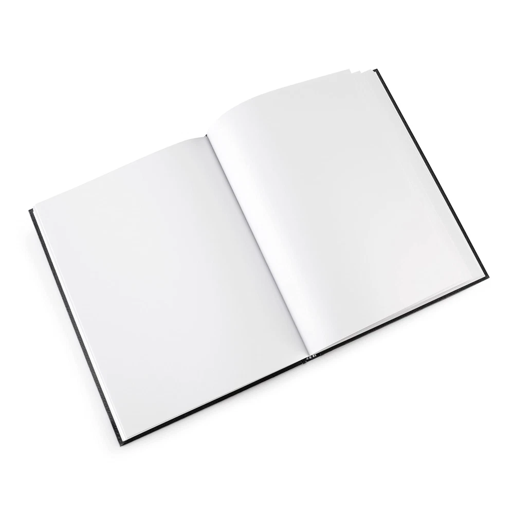 This Hardbound 8.5x11 Inch Sketchbook contains 110 sheets of white, 70 pound (144 gsm), acid-free paper. The sturdy, elegant cover features a leatherette texture and keeps your artwork and notes intact while providing a firm drawing surface. The hardbound spine is specially designed to lay flat while in use and conveniently stands upright on a bookshelf. This book is perfect for sketching, writing, and classwork. Paper is sourced from certified sustainable forests. Hardbound textured black embossed cover Perfect for all dry media Classic sketch book Bright white 70-pound paper Acid free