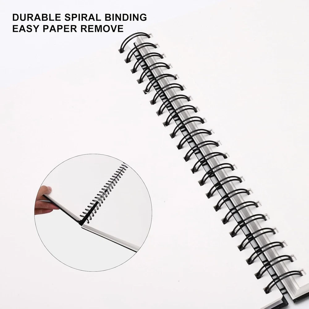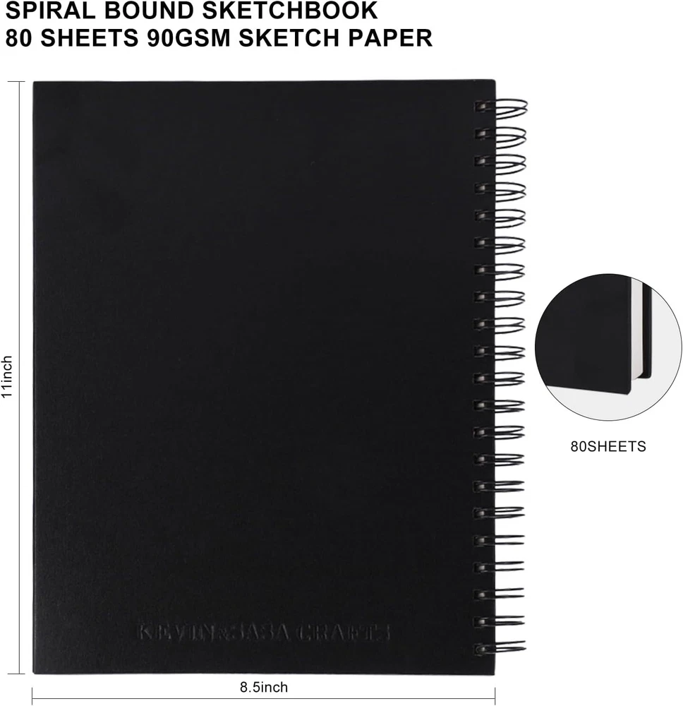 8.5x11 in Hardbound Spiral Sketch Book,80 Sheets 90gsm Inner Paper-Free shipping About this item CONVENIENT DESIGNS FOR SKETCH DRAWING: The sketchbook designs with durable spiral bound and die cut line per each inner paper, you can detach paper without any trouble. Also, the 8.5x11 inches 90gsm high quality sketch paper provide perfect drawing experience PREMIUM AND DURABLE PAPER: The sketchbook includes 80 sheets 90gsm paper, the durable sketch paper provides perfect drawing and writing experience, great idea for all drawing method, such as, pencil, pastels, charcoal, gel pen and so on LARGE SIZE WITH PROTECTIVE COVER: 1 pack of 8.5x11 inches sketchbook, the large size provides multiple functions, to meet all your drawing requirements, it can offer unique prefect painting experience for you. Also, the waterproof hardcover with PU material makes protection function for high quality art works QUALITY ENSURE: All of the components are under our door-to-door quality control system; quality assurance process delivers outstanding quality and durability GREAT GIFT: An ideal gift for you to find more sketch drawing necessary tools easy way and ideas here. It provides a unique and practical present Product Description 8.5x11inches Hardbound Sketch Book with die cut line per each inner paper The sketchbook designs with durable spiral bound and die cut line per each inner paper, you can detach paper without any trouble. Also, the 8.5x11 inches 90gsm high quality sketch paper provide perfect drawing experience. PREMIUM AND DURABLE PAPER The sketchbook includes 80 sheets 90gsm paper, the durable sketch paper provides perfect drawing and writing experience, great idea for all drawing method. LARGE SIZE WITH PROTECTIVE COVER 8.5x11 inches sketchbook, the large size provides multiple functions, to meet all your drawing requirements, it can offer unique prefect painting experience for you. Also, the waterproof hardcover with PU material makes protection function for high quality art works. CONVENIENT DESIGNS FOR SKETCH DRAWING The sketchbook designs with durable spiral bound and die cut line per each inner paper, you can detach paper without any trouble. Also, the 8.5x11 inches 90gsm high quality sketch paper provide perfect drawing experience.
