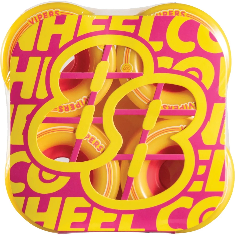 88 Wheel Co Viper Freeride Skateboard Wheels Love to cruise? These brand new 88 Wheel Co wheels are built to last! Measuring 70mm in diameter and 76a in hardness, they pack a super smooth ride. Over gravel or while you film that dope skate video that'll put you on the map (go ahead - all of us at Warehouse Skateboards will wait), these softer wheels help you dominate like a smooth operator. 88 Wheel Co Viper Freeride Skateboard Wheels are sold in (1) set of four (4) wheels. Note: Bearings not included. Features: One (1) set of 70mm 88 Wheel Co Viper Freeride Skateboard Wheels; includes four (4) wheels Diameter: 70mm Durometer: 76a Color: Yellow