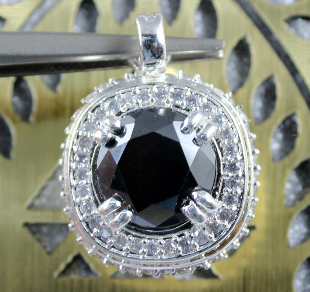 ELEGANT LOOK! GREAT SHINE ! Diamond Color - Black Shape of Diamond - Round Brilliant Cut Approx. Weight of Diamond - 8.95 Carat Approx. Size of Diamond - 11 mm X 11 mm Origin of Diamond - Brazil Species - Earth Mined Treated - HPHT Cut - Excellent Finish - White PRODUCT CODE- T6564 This diamond Pendant is handcrafted with utmost care. Would make an ideal gift for someone special. The diamond has excellent cut and luster. Comes in attractive packaging. CERTIFICATE OF AUTHENTICITY PROVIDED Note: Images are clicked under Studio Condition The product May be smaller than it appears PAYMENT Buyer should be a PayPal verified member. we accept only Paypal .Our payment is expected within days of auction end. If payment is not received, an unpaid item case will be opened & the item will be re-listed after closing the case . SHIPPING WE SHIP WORLDWIDE.WE USUALLY SHIP WITHIN 1 DAY OF RECEIVING CLEAR PAYMENT. DELIVERY MAY TAKE-UP-TO 15-20 WORKING DAYS (BY NORMAL INDIA REGISTERED POST), 7-10 DAYS(BY EMS SPEED POST, EMS CHARGES VARY FROM COUNTRY TO COUNTRY) KINDLY INFORM US IF YOU WANT EXPEDITED SHIPPING BY EMS. We accept no responsibility for shipping errors related to incorrect shipping addresses, customs delays custom charges. We accept no responsibility if the parcel is opened by the customs, mishandled or lost in transit. We accept no responsibility if some of the items go missing from the parcel in transit. We are not responsible for custom duties or any other charges being levied in the buyer’s country. If parcel is returned or rejected due to custom clearance, wrong address or any reason due to the buyer, the buyer will pay for the expense incurred and reshipping. If the parcel is held by customs the buyer has to pay for the duties being levied by the customs and the buyer has to contact the customs and other related agencies to secure the release of the parcel. RETURNS No Questions Asked, 100% money back guarantee without any restocking fees if dissatisfied. Item (s) have to be returned for a refund within 30 days after receiving it and must be returned in their original, conditions with the certificate (if any).Damaged goods will not be accepted and will be returned to the sender. For International Buyers, please return by Registered Air Mail. Only and follow our instructions carefully, otherwise we will, not be responsible if the item get stuck with customs Please kindly contact us before sending back any item for all important instructions. Shipping Fees are Non-Refundable and Buyer pays the return shipping. No exceptions. Domestic buyers therefore requested to contact us before sending back any item for all important instructions CONTACT If you have any comments or questions, please contact us via EBay message system. FEEDBACK Once you receive the item, we ask that you leave us a Positive feedback with all 5 stars. Please do not hesitate to contact us for any reason. We also kindly request that you do not leave a negative or neutral feedback without contacting us first. We will try our best to resolve any problems that you may have with the transaction. Legal Disclaimer : Refund or any claim liability for the buyer is only limited to the value of the item purchased. No additional claims will be entertained for any other reason whatsoever. Please note that since various labs may have different testing methods and the interpretation of all our Diamonds and Stones may differ from one lab to another as well as from one Gemologist, appraiser, expert and Jeweler etc. to another, we will be unable to accept any other lab's Lab Certificate or the judgement of any other third party including any Gemologist, appraiser, Lab, Jeweler etc. By consenting to buy our items it is understood that you have read, understood and agree to the terms and conditions as well as the FAQ for the Diamonds and Jewelry being sold by us. FAQ What are Color Diamonds? These are genuine Colored Diamonds found naturally mines mainly from Brazil. They are more porous than White Diamonds and are found in the upper layers of the ground relative to the White Diamonds that are mined deep. Some scientists are of the opinion that their origin maybe a Meteor that impacted earth Billions of years ago. What is their nature? Colored Diamonds are not found in the state as they are sold. They are made from earth mined rough rock found in mines of Brazil. The Rock color varies from Light Blue, Dark Blue, Champagne, Pink, Green etc. What is the treatment process? To bring out its true color it needs to be treated. The process is a natural one employing gentle heating a high-pressure environment (HPHT) which gradually brings out the true color of the Diamond. Are any artificial colors or chemicals added? There are no artificial colors or chemicals included in the process. They are not irradiated. Does it alter the composition? The process may or may not alter the composition. It remains a true Diamond nevertheless. Once our diamonds are heat-treated, it may move the molecules. This causes them to not always test properly with a hand tester. If a hand tester is used, sometimes they test as diamonds and sometimes they test as moissanites. But they are genuine earth mined diamonds, not moissanite or CZ. If you use a jeweler's loop you can see this by their molecular composition. How does it differ from a Moissanite? A Moissanite is man-made whereas our Diamonds are earth-mined. A Moissanite will lose its shine and wither away in a short period whereas a Diamond will remain as they are forever. My Jeweler says these are not Diamonds? These Diamonds are rare and hence opinion may be varied from person to person. Further a Jeweler would not like to lose a customer who buys online as from eBay, rather than from his store losing a customer in the process. Any opinions of any Jeweler, Gemologist, expert, appraiser etc will not be accepted to judge the authenticity of our Gemstones and Diamonds. How can you sell them so inexpensive? We are wholesal
